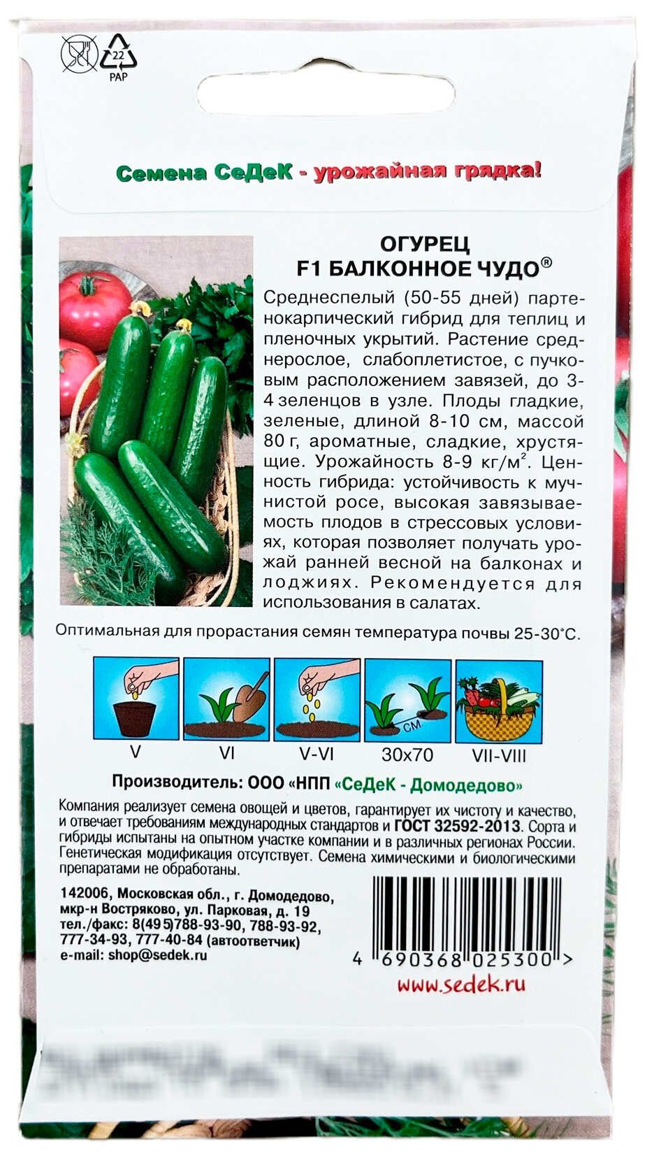СохранитьСемена Огурец Балконное чудо F1 0,2г Партенокарпический (Седек) интересное: