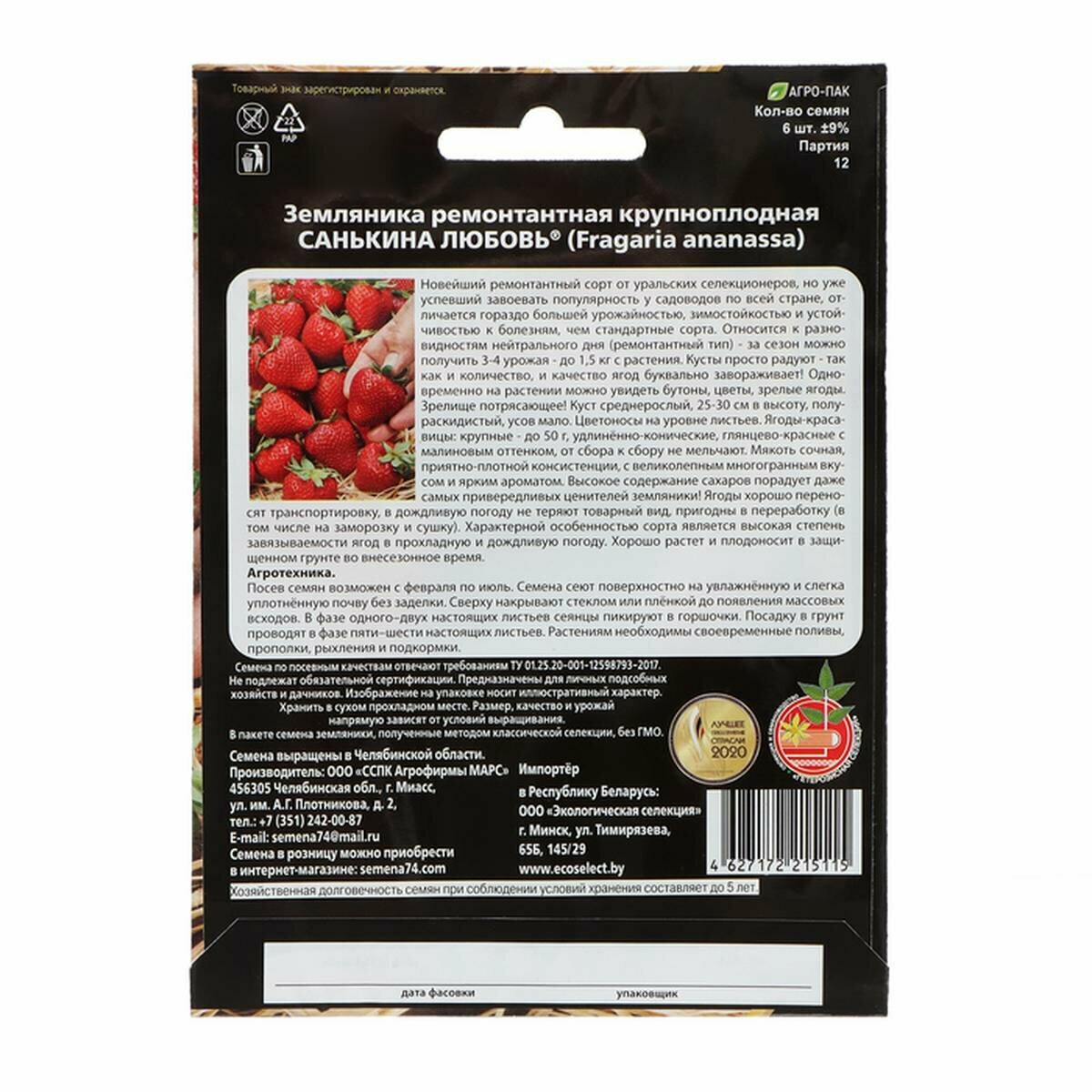 Купить Семена Земляника "Санькина любовь" , 6 шт, 1 упак.