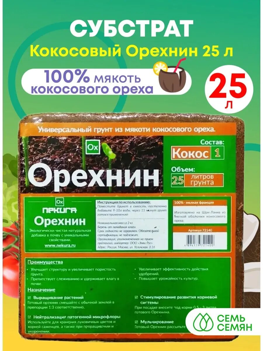 Кокосовый субстрат NEKURA Орехнин-1 брикет, 25 л
