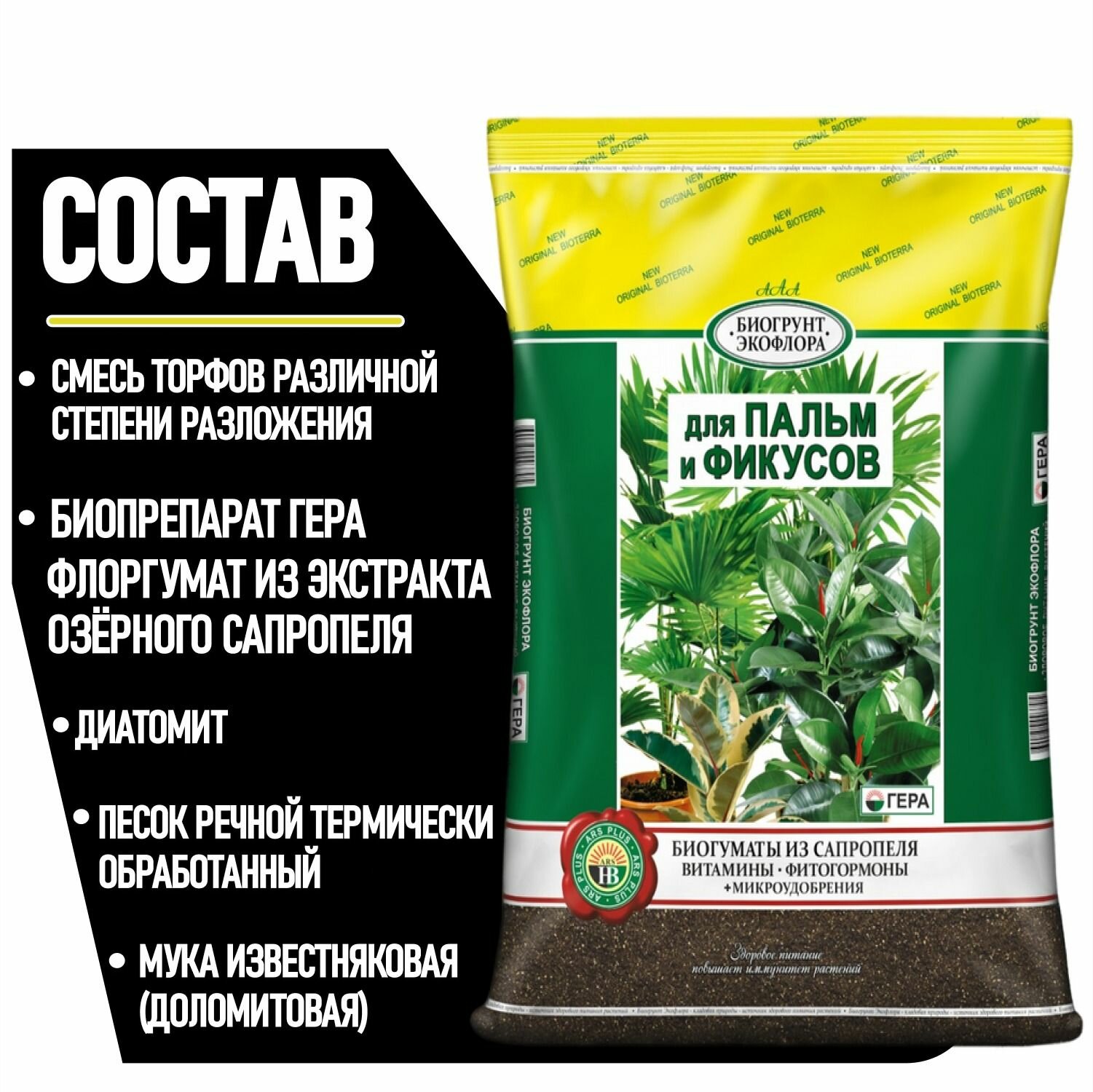 Биогрунт с сапропелем для пальм и фикусов Гера экофлора, 2шт по 5л.