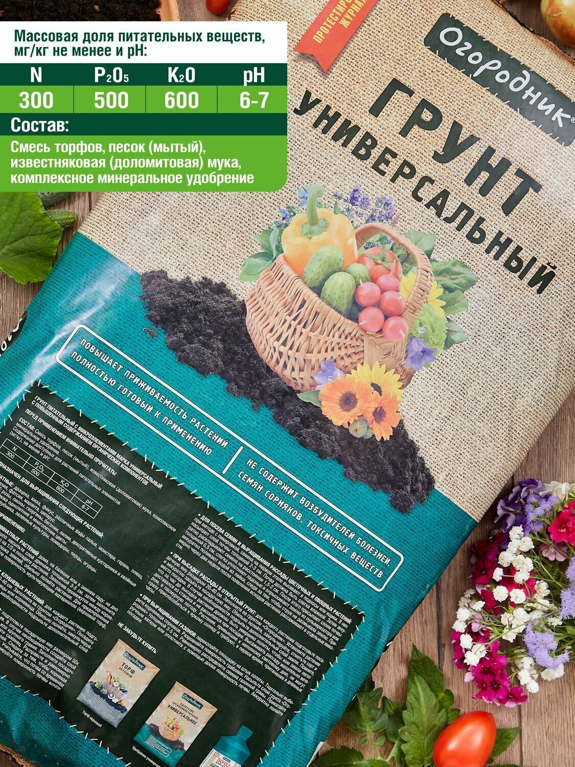 | Дополнительная информация | Грунт универсальный Огородник 60л |