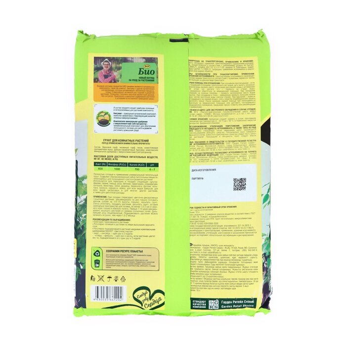 | Состав | верховой торф, низинный торф, песок, известняковая (доломитовая) мука, дренаж керамзитовый, биогумус, комплексное минеральное удобрение с микроэлементами Субстратдюнгер |