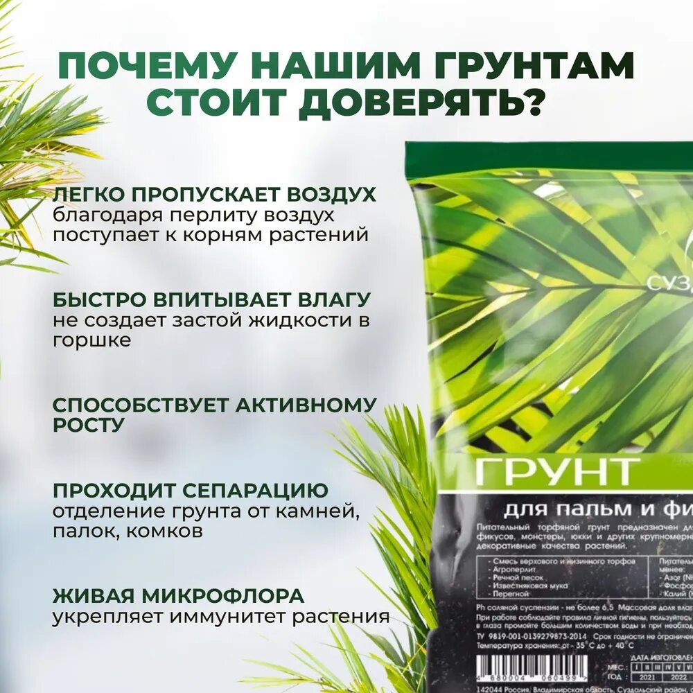Грунт для фикуса и пальмы Сила Суздаля /земля для комнатных цветов, 5л