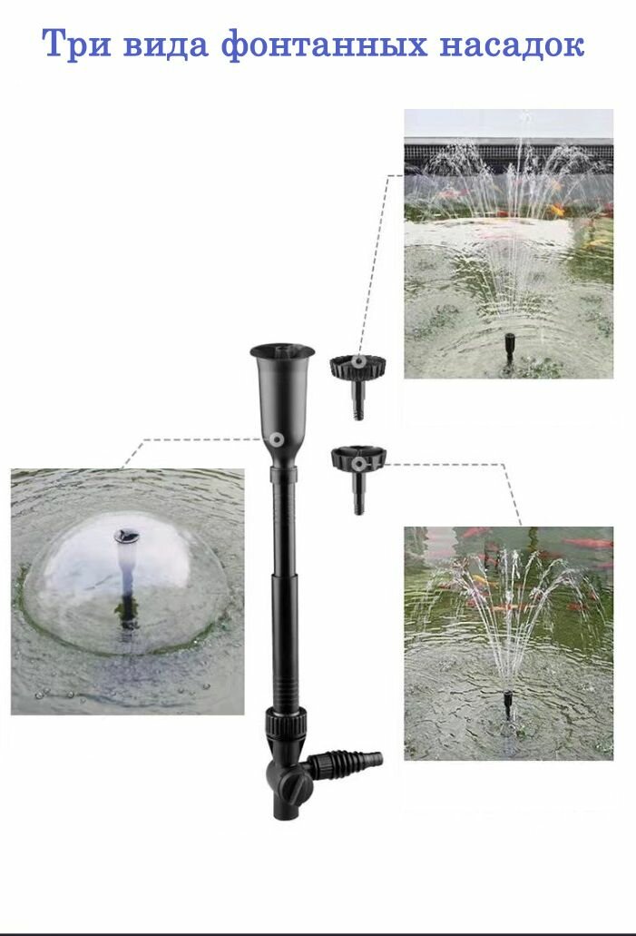 Фонтанный насос с фильтром и 3-мя насадками CHJ-1503 интересное:
