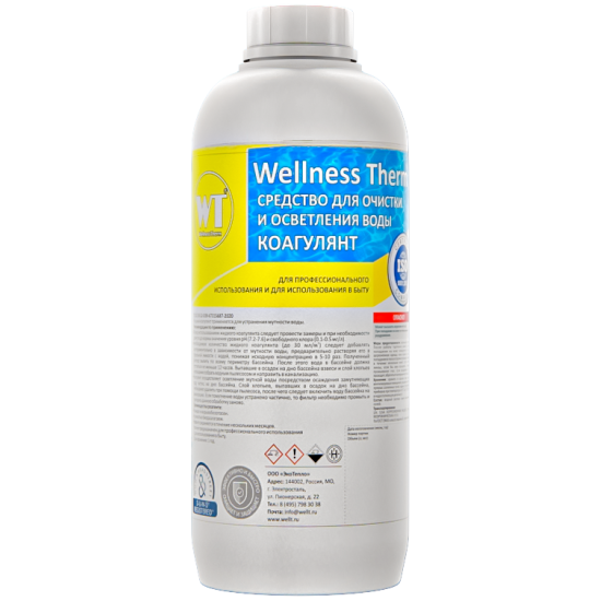 Коагулянт Wellness Therm Средство для очистки и осветления воды 1 литр .
