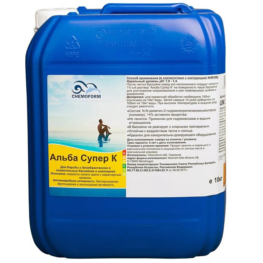СохранитьChemoform Альба супер К против водорослей, бактерий и грибков в бассейне, 10 л, цена - за 1 шт интересное: