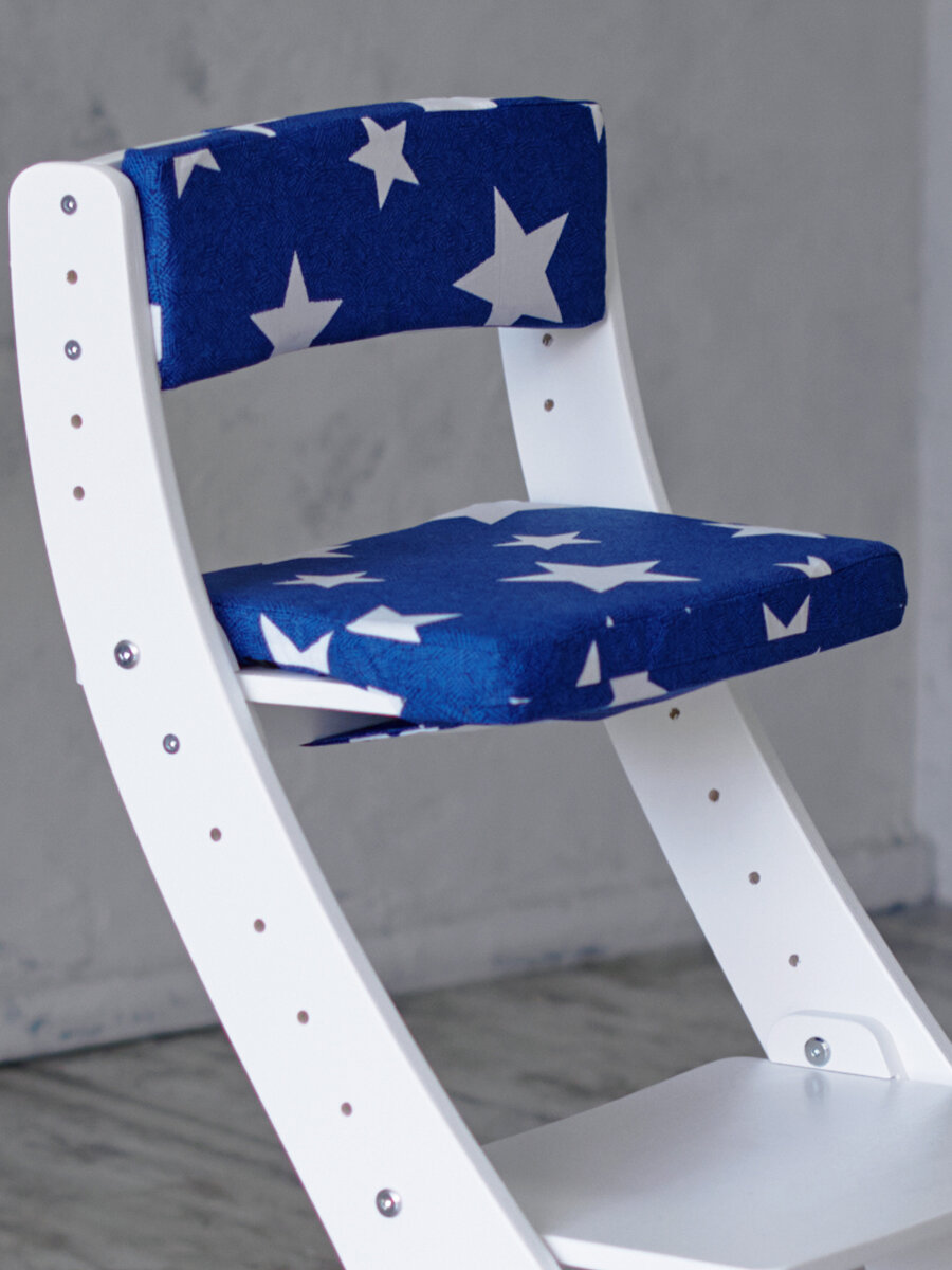 Растущий стул детский Klikkin белый и подушки синие звезды