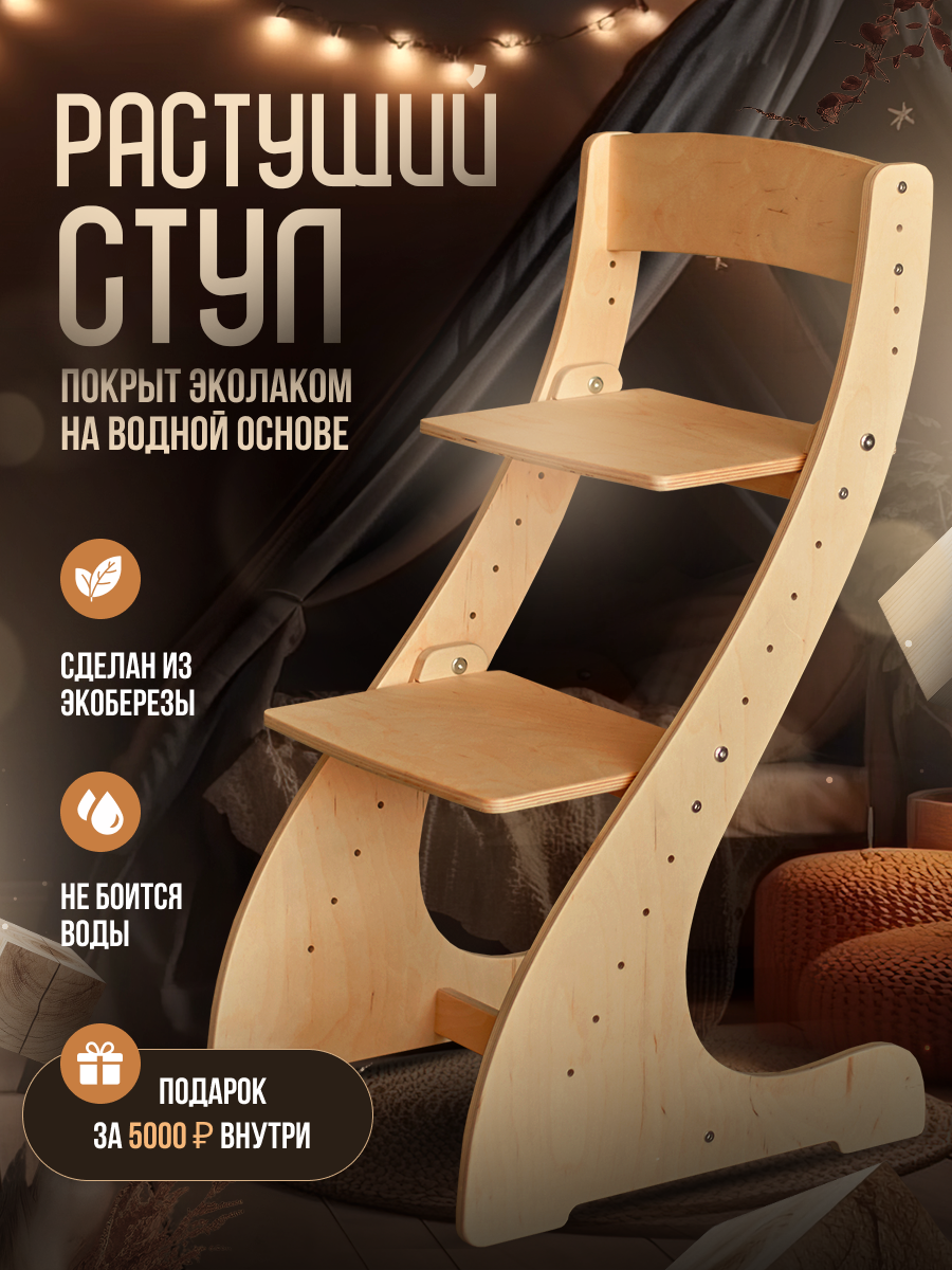 Растущий стул для детей FORLIKE белый, с подлокотниками, деревянный регулируемый стул