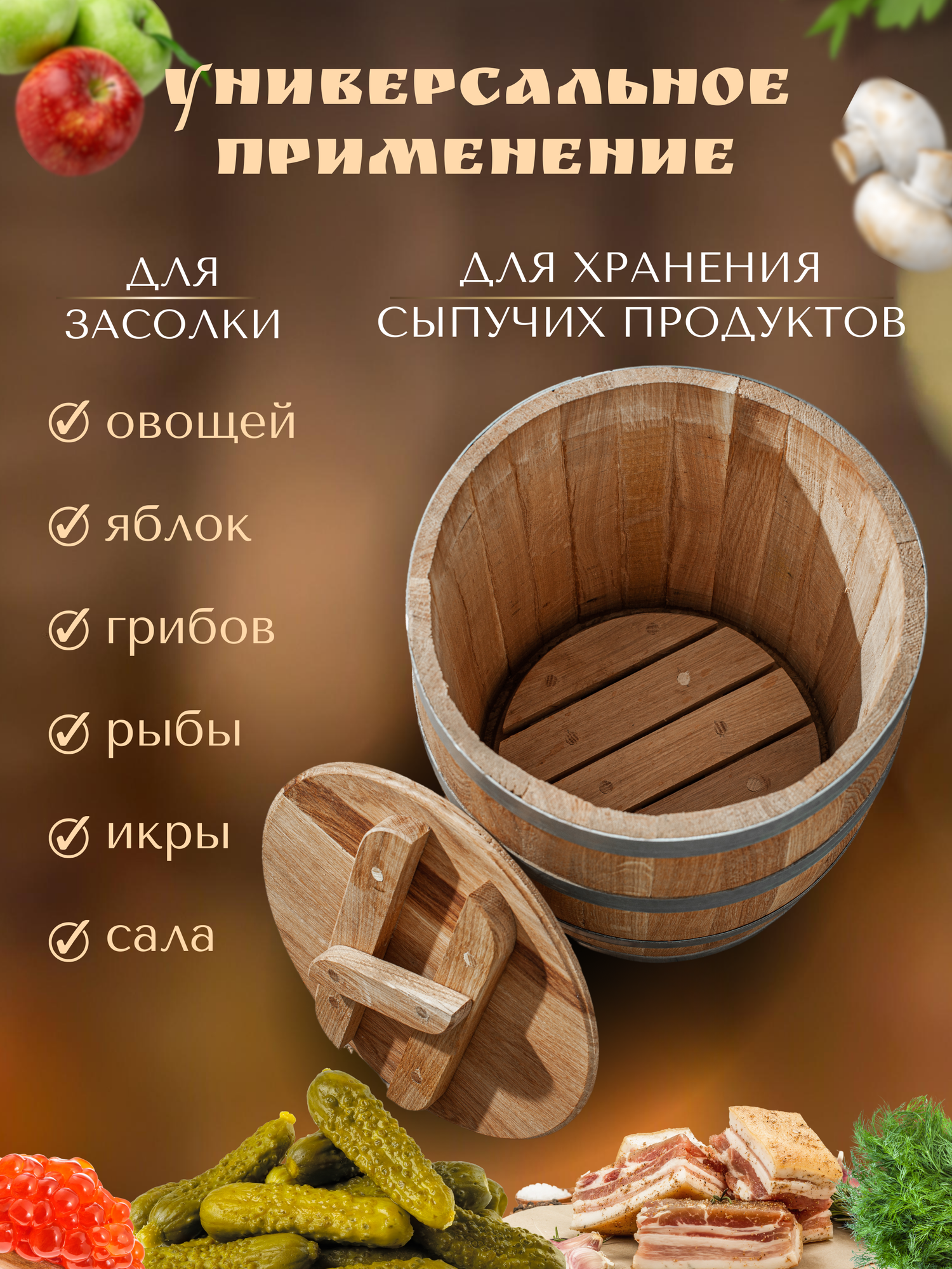 Кадка дубовая для засолки, кадка для засолки овощей, 25 литров интересное: