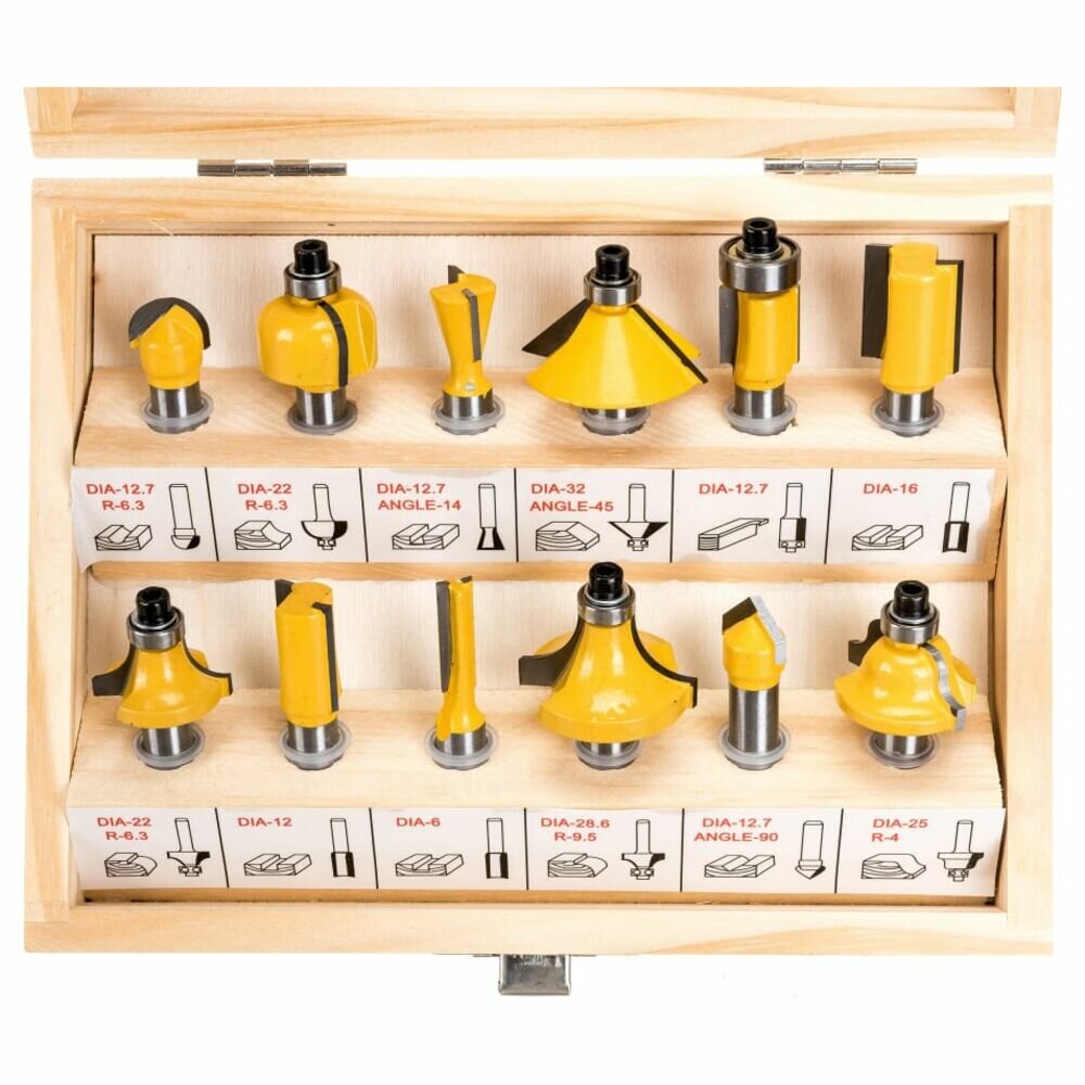 | Комплектация | 1. Пазовая галтельная фреза DIA-12.7, R-6.3 2. Пазовая конструкционная фреза «ласточкин хвост» DIA-12.7, ANGLE-14 3. Пазовая прямая фреза DIA-16 4. Пазовая прямая фреза DIA-12 5. Пазовая прямая фреза DIA-6 6. Пазовая V-образная фреза DIA-12.7, ANGLE-90 7. Кромочная калевочная фреза DIA-22, R-6.3 8. Кромочная калевочная фреза DIA-32, ANGLE 45 9. Кромочная прямая фреза DIA-12.7 10. Кромочная калевочная фреза DIA-22, R-6.3 11. Кромочная калевочная фреза DIA-28.6, R-9.5 12. Кромочная калевочная фреза DIA-25, R-4 13. Шестигранный ключ 2,5 мм |