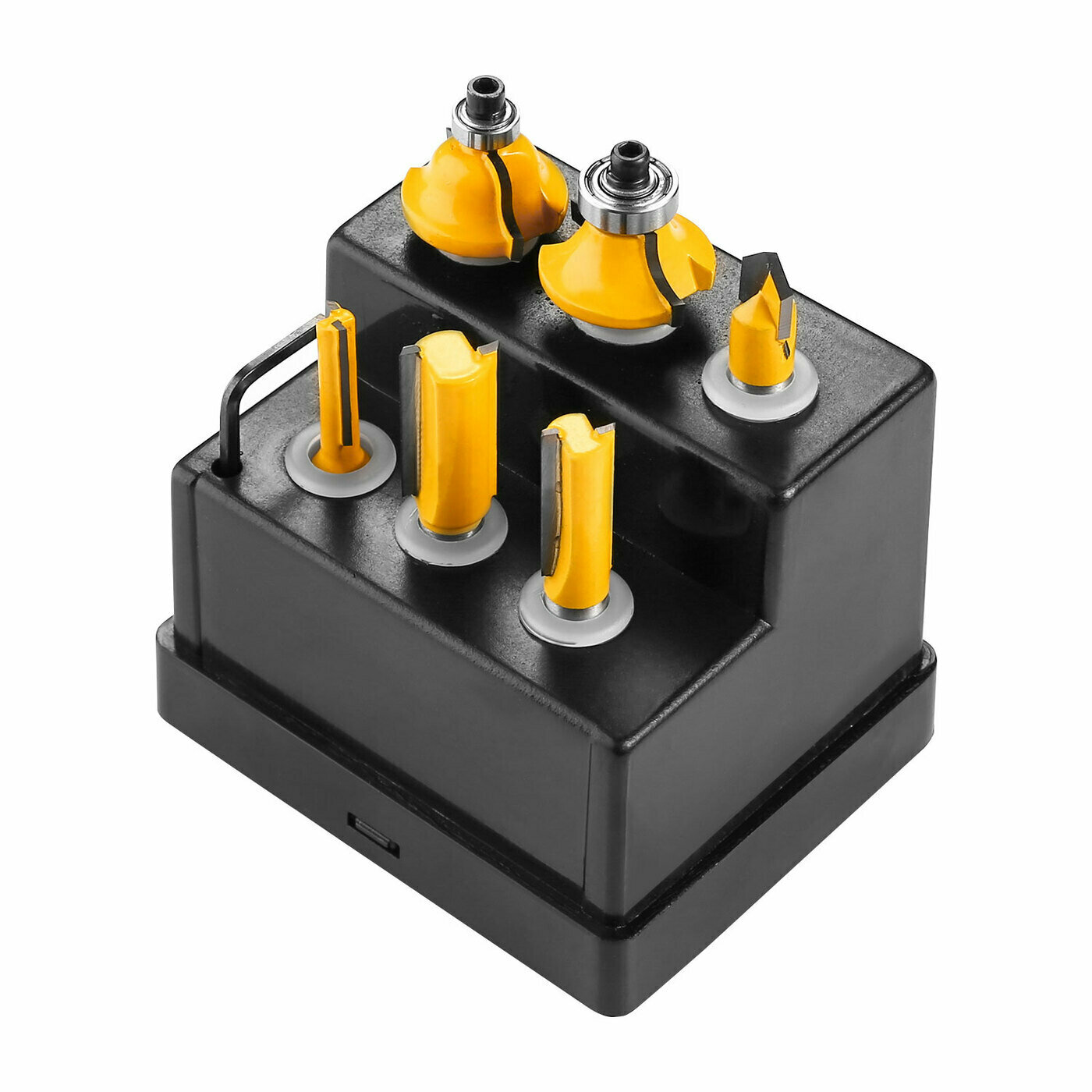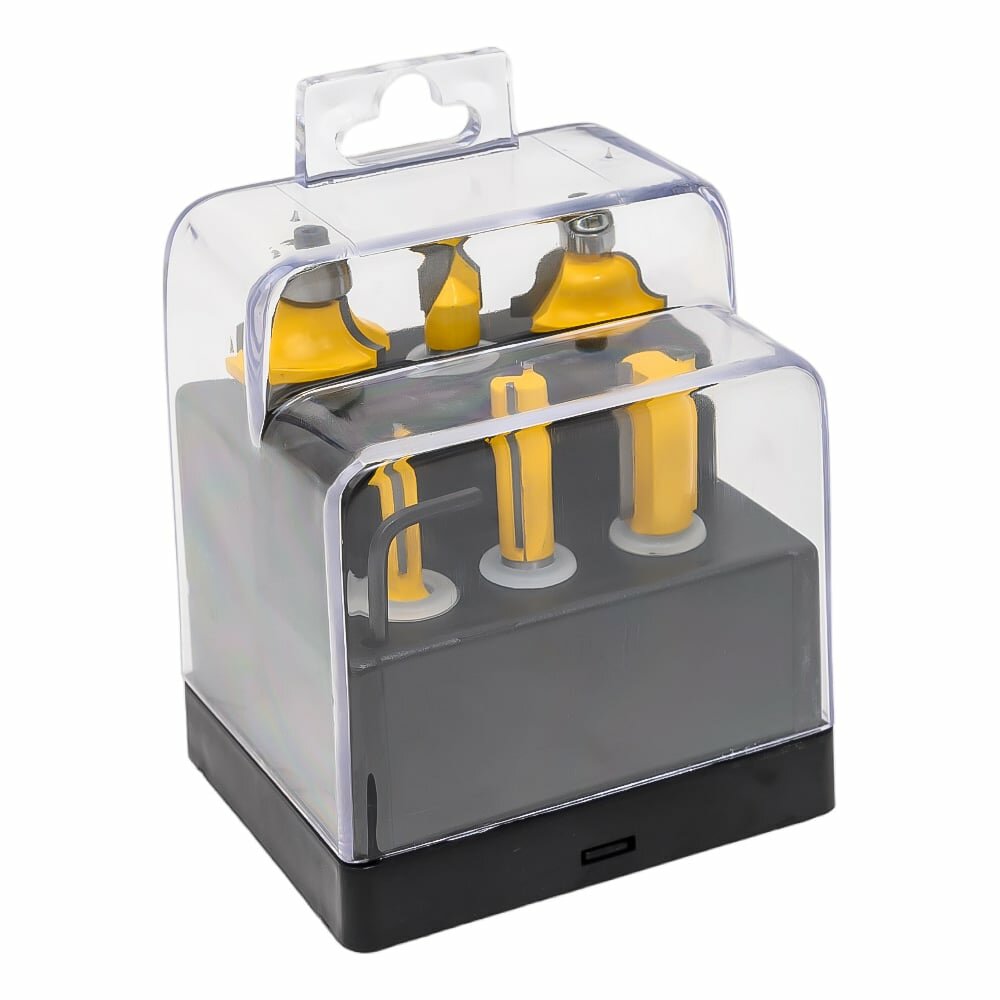 | Комплектация | 1. Пазовая галтельная фреза DIA-12.7, R-6.3 2. Пазовая конструкционная фреза «ласточкин хвост» DIA-12.7, ANGLE-14 3. Пазовая прямая фреза DIA-16 4. Пазовая прямая фреза DIA-12 5. Пазовая прямая фреза DIA-6 6. Пазовая V-образная фреза DIA-12.7, ANGLE-90 7. Кромочная калевочная фреза DIA-22, R-6.3 8. Кромочная калевочная фреза DIA-32, ANGLE 45 9. Кромочная прямая фреза DIA-12.7 10. Кромочная калевочная фреза DIA-22, R-6.3 11. Кромочная калевочная фреза DIA-28.6, R-9.5 12. Кромочная калевочная фреза DIA-25, R-4 13. Шестигранный ключ 2,5 мм |