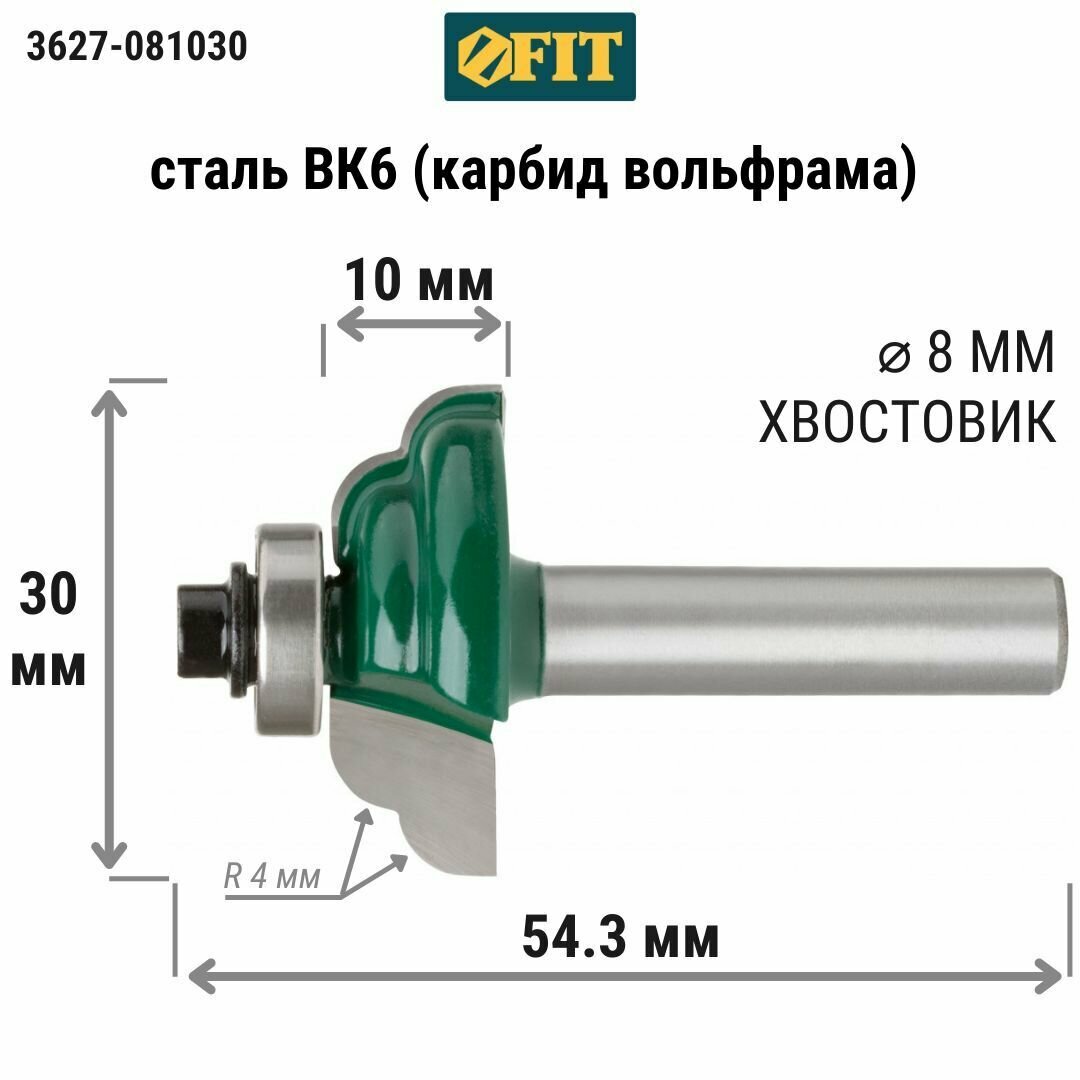 Купить Фреза FIT кромочная калевочная с подшипником DxHxL=30х10х54,3мм(3627-081030)