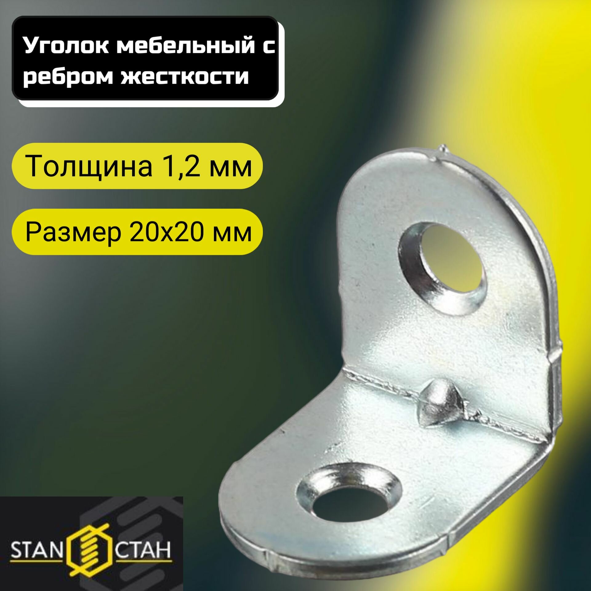 Уголок мебельный 20х20 с ребром жесткости, крепежный, оцинкованный 10шт