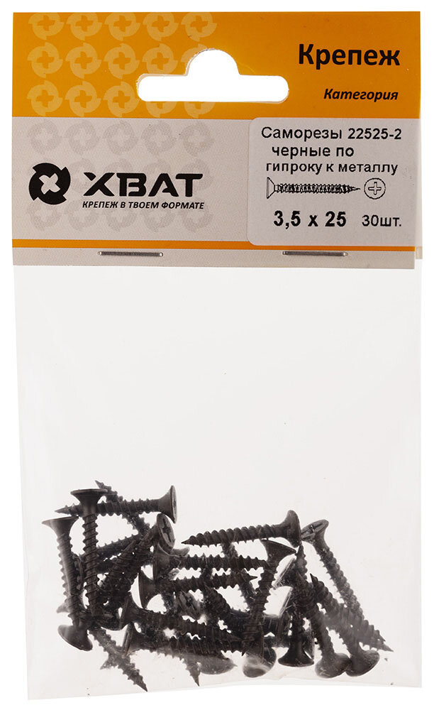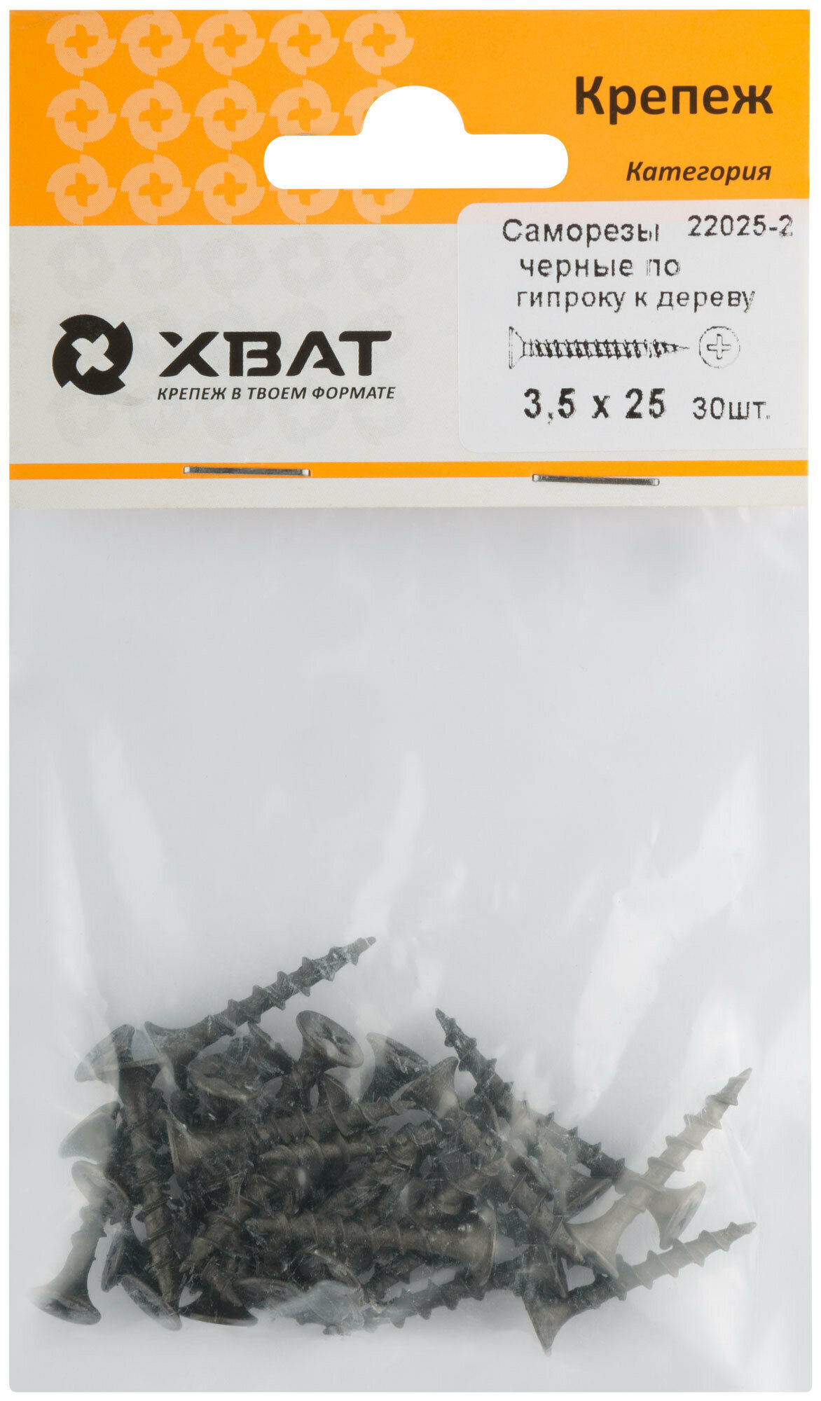Саморез 3.5х25мм по дереву для ГКЛ черный (30шт.) Хват