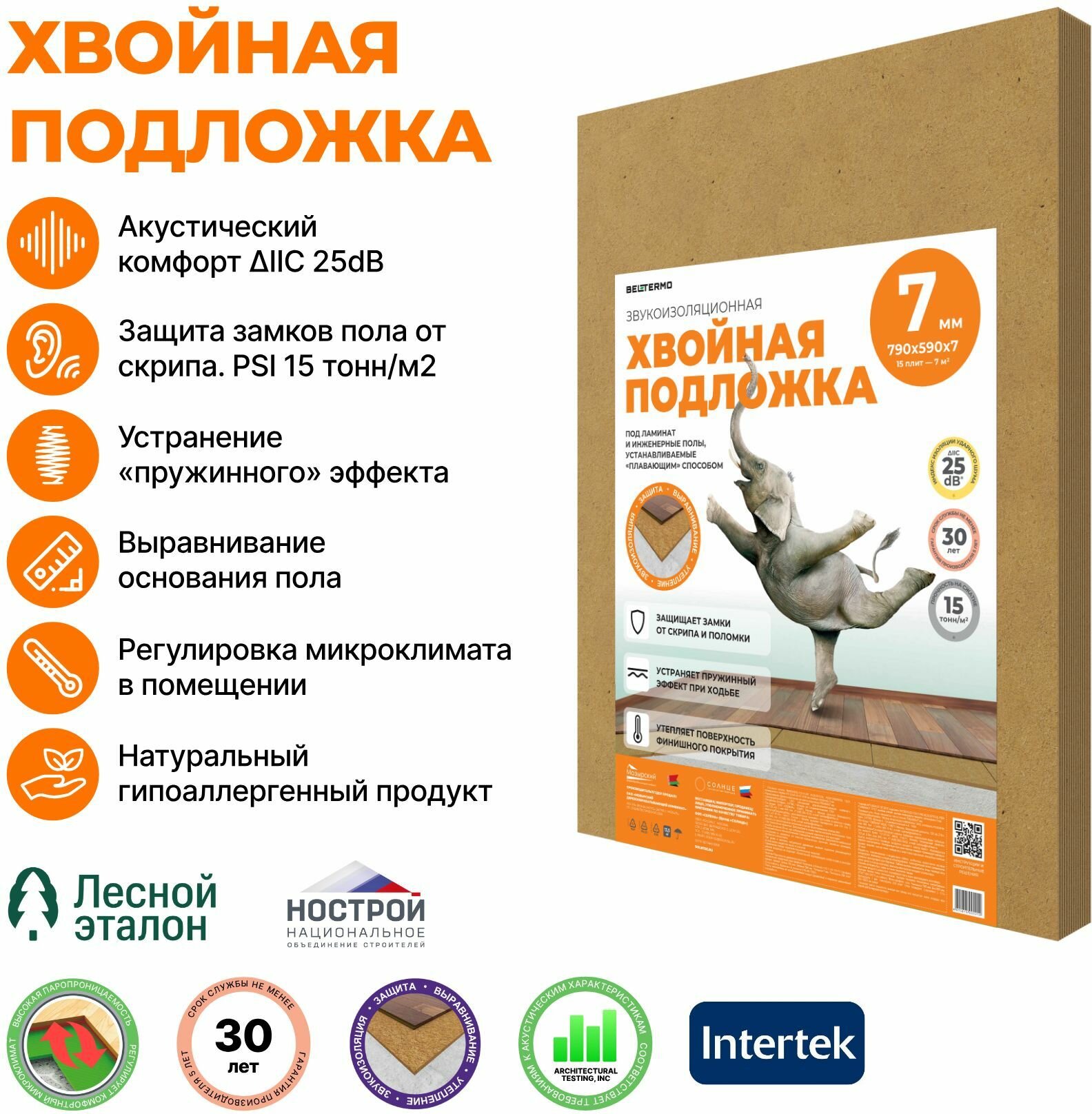 Подложка хвойная для ламината и паркета Beltermo 5 мм (15 листов/7 кв. м)