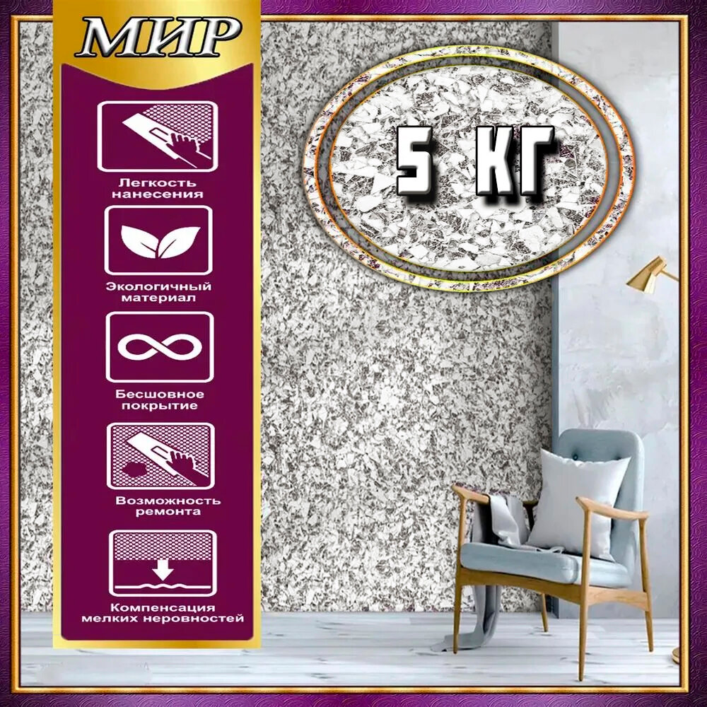 Жидкие обои Мир LW01-1000, 1 кг, Белый