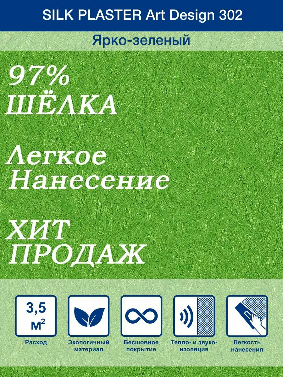 Жидкие обои Silk Plaster Арт Дизайн 302 шелк, комплект 6шт (до 21кв. м) сочная трава