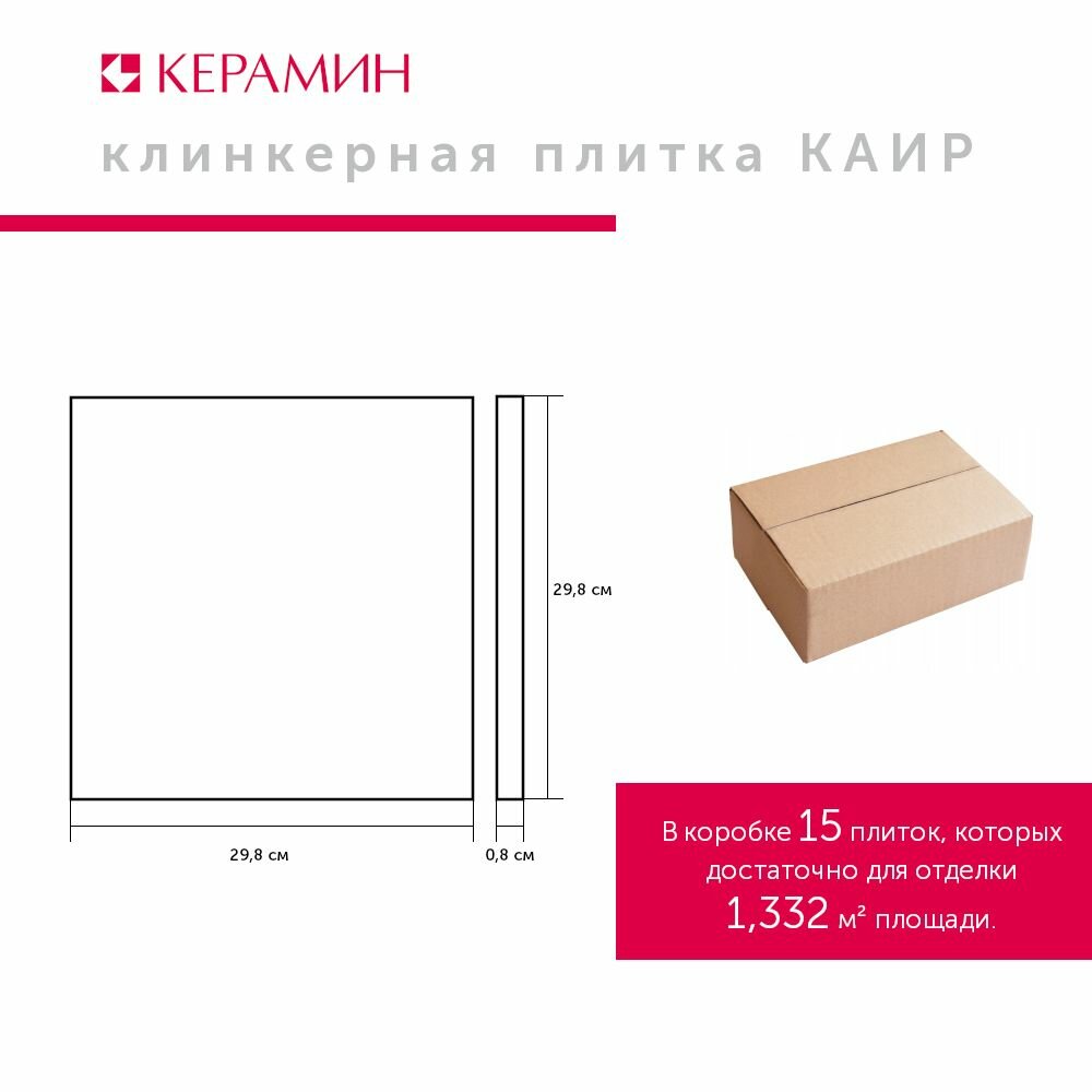 Плитка клинкерная Керамин Каир 4 коричневый 29.8x29.8 см (15 шт 1.332 м2) интересное: