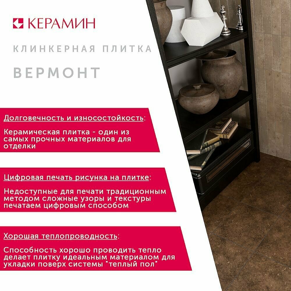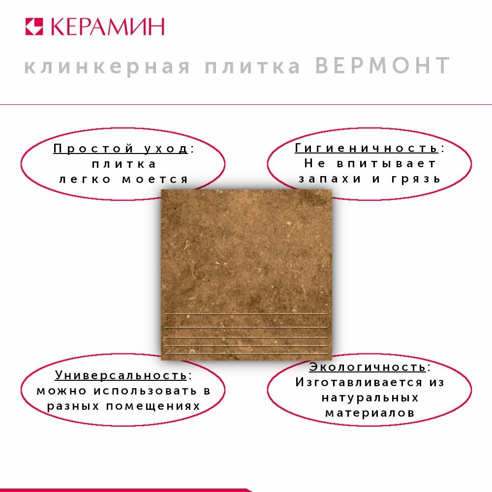 СохранитьКерамин ступень Клинкерная плитка Вермонт 4 коричневый 29,8х29,8 интересное: