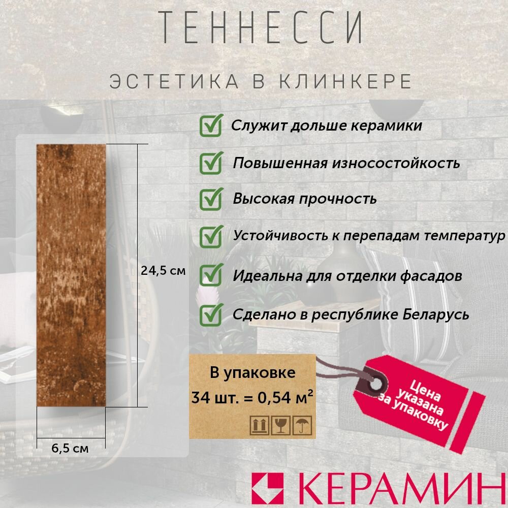 Керамин Клинкерная плитка Теннесси 3Т коричневый 24,5х6,5 интересное: