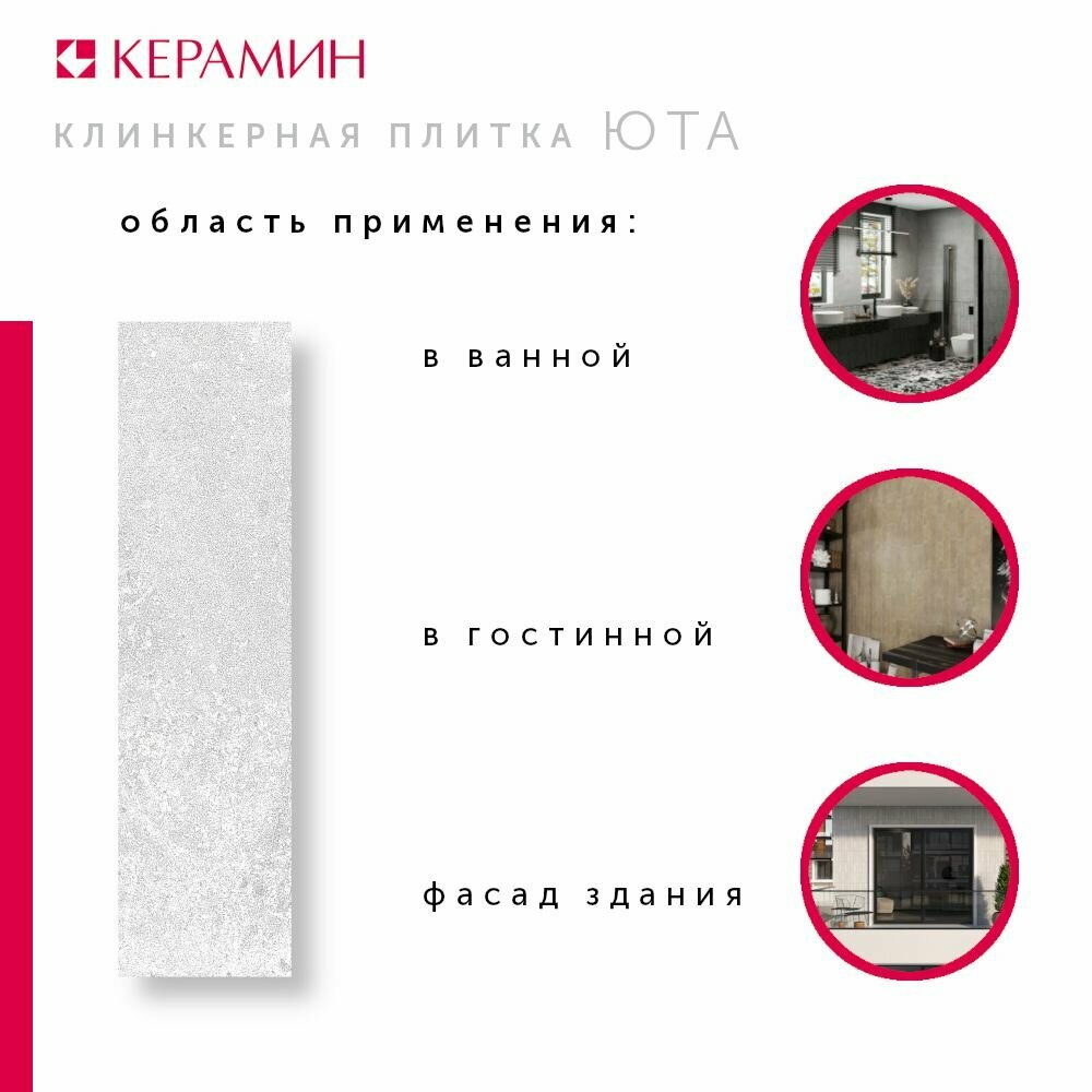 Плитка клинкерная Керамин Юта 1 светло-серый 24.5x6.5 см (34 шт 0.54 м2) интересное: