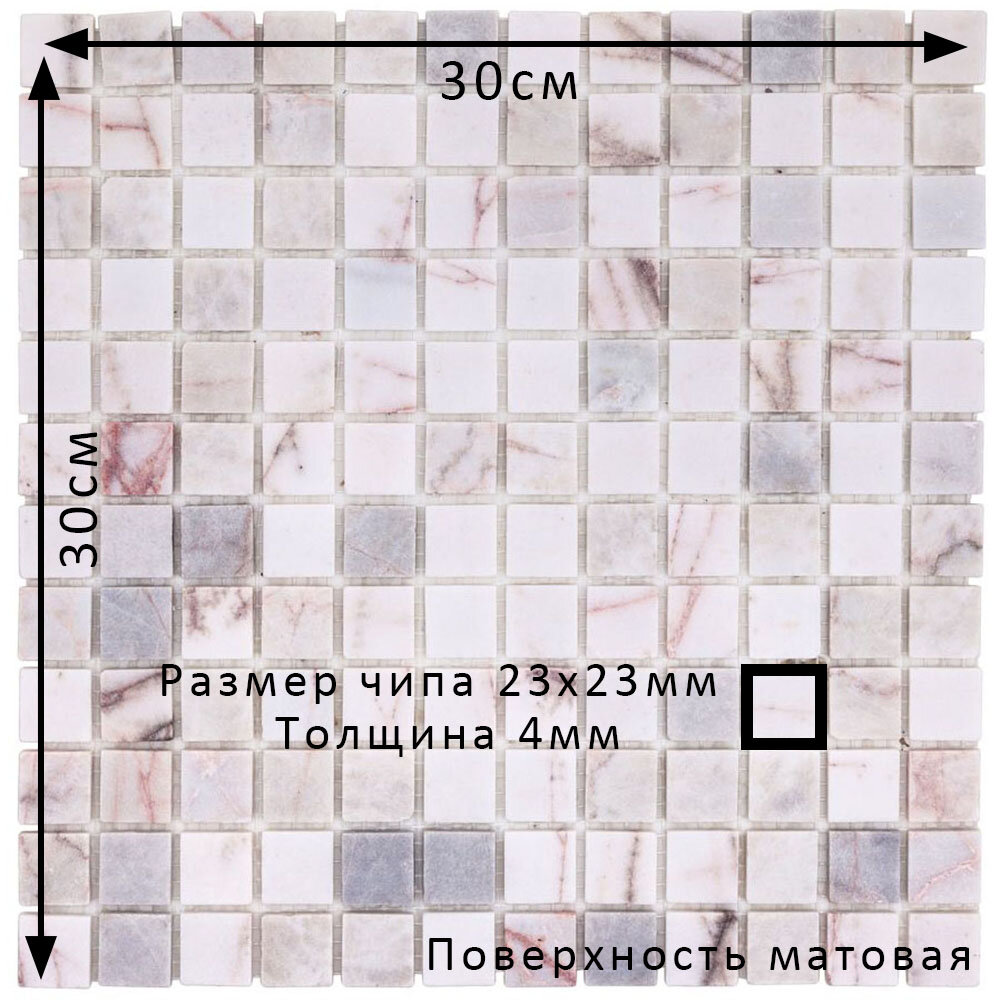 Мозаика из натурального мрамора Pink Porriny DAO-537-23-4. Матовая. Размер 300х300мм. Толщина 4мм. Цвет белый/розовый. 1 лист. Площадь 0.09м2