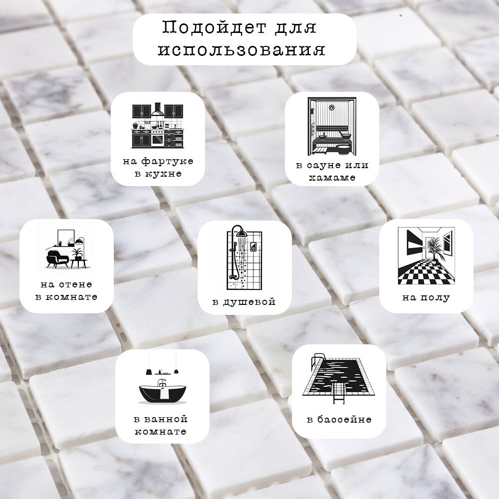 Мозаика из мрамора Carrara DAO-636-23-4. 3 листа. Площадь 0.27 м² интересное: