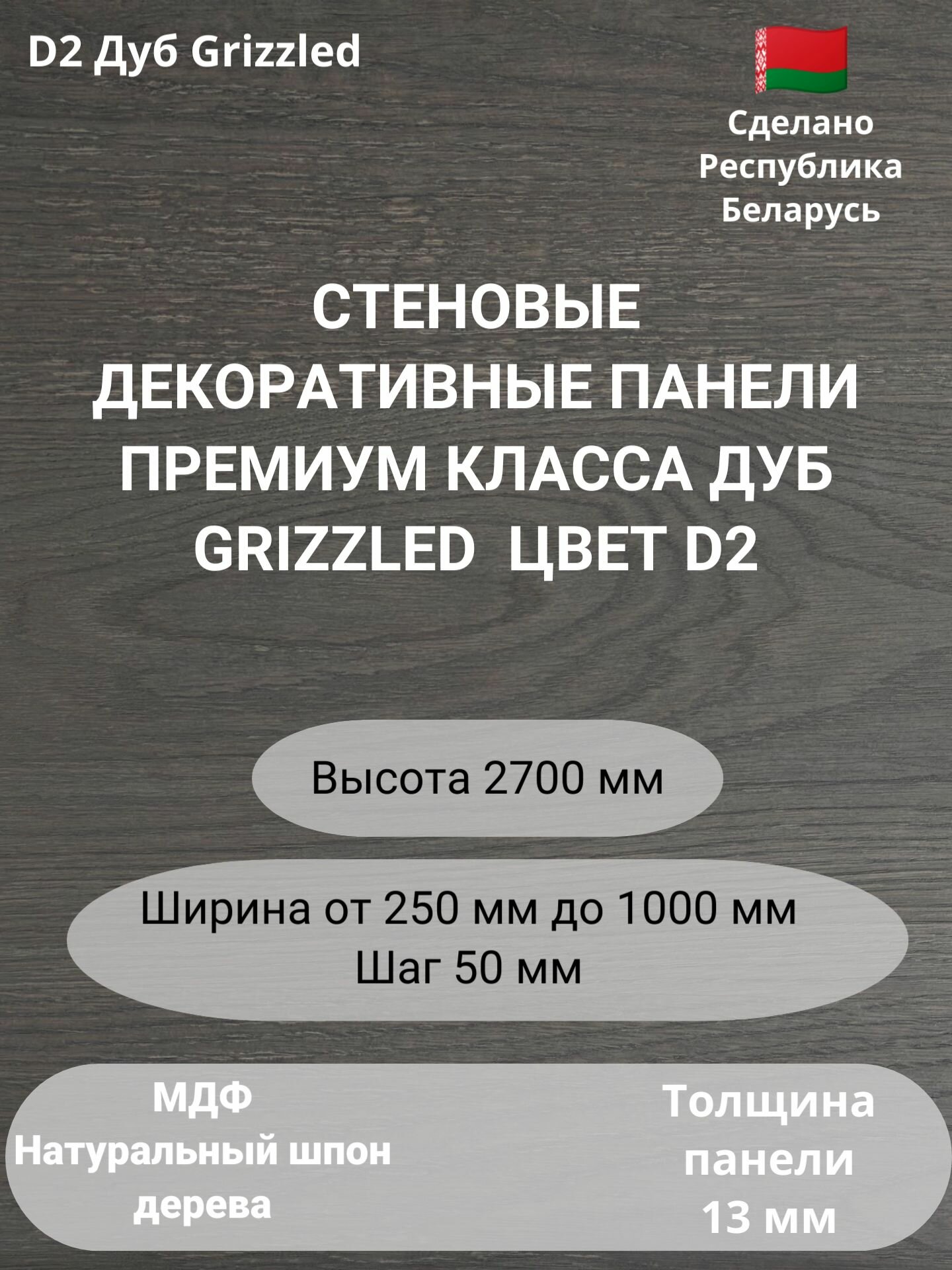 Стеновые панели шпон дерева ширина 250 мм. Цвет Дуб Grizzled D2