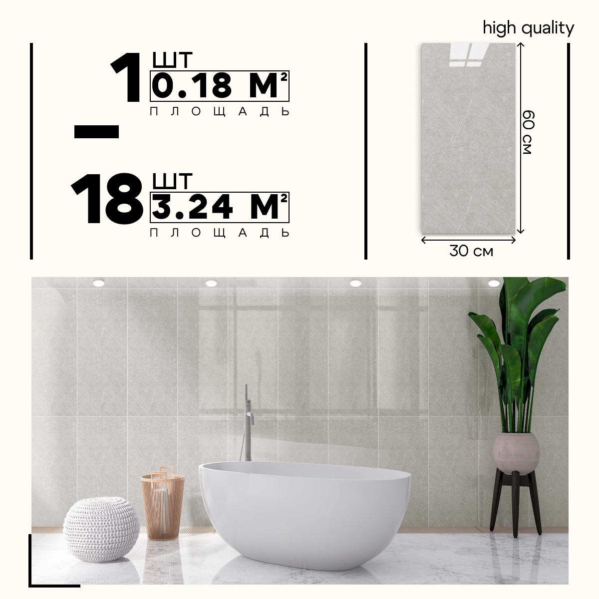 | Подробная комплектация | 1 упаковка из 18 панелей 30x60см, Всего 3.24м2 |