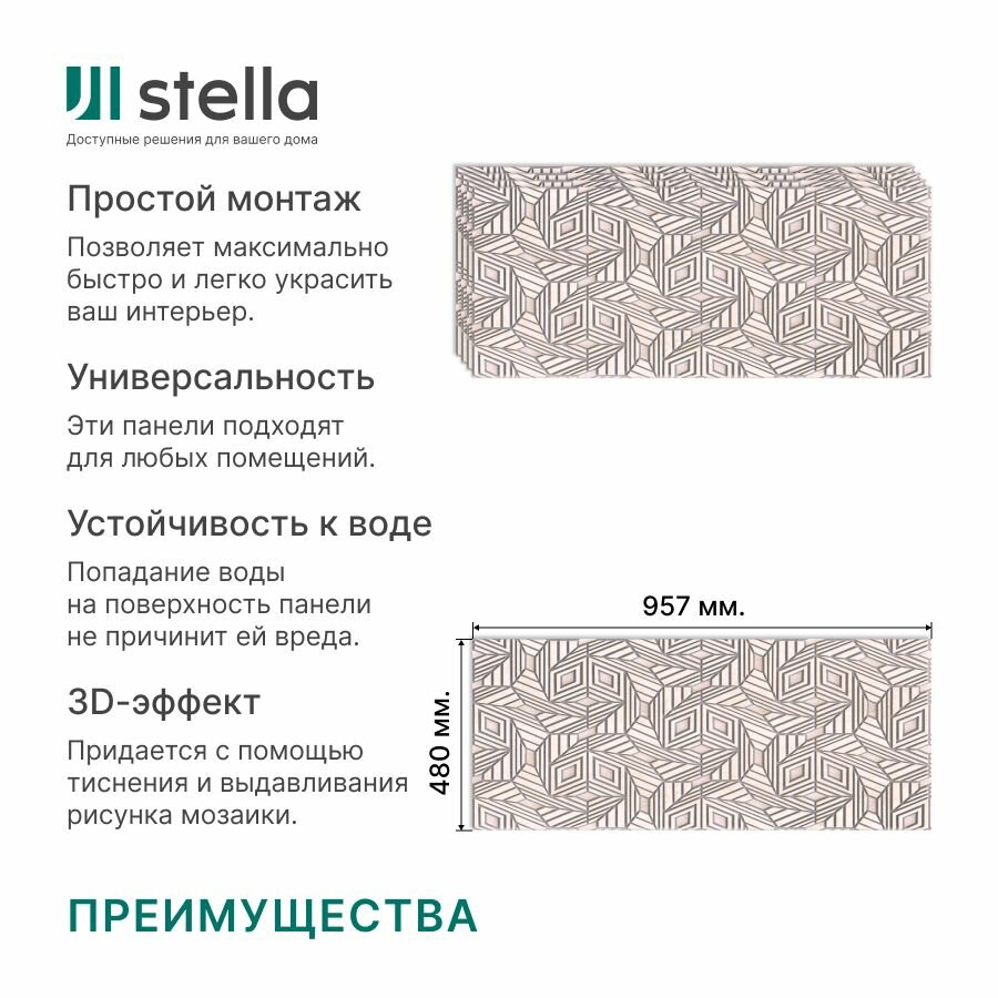 Stella Стеновые панели ПВХ с 3D эффектом для стен, для кухни, для ванной, мозаика Шелби 957х480х0,3 мм (упаковка 10 штук)