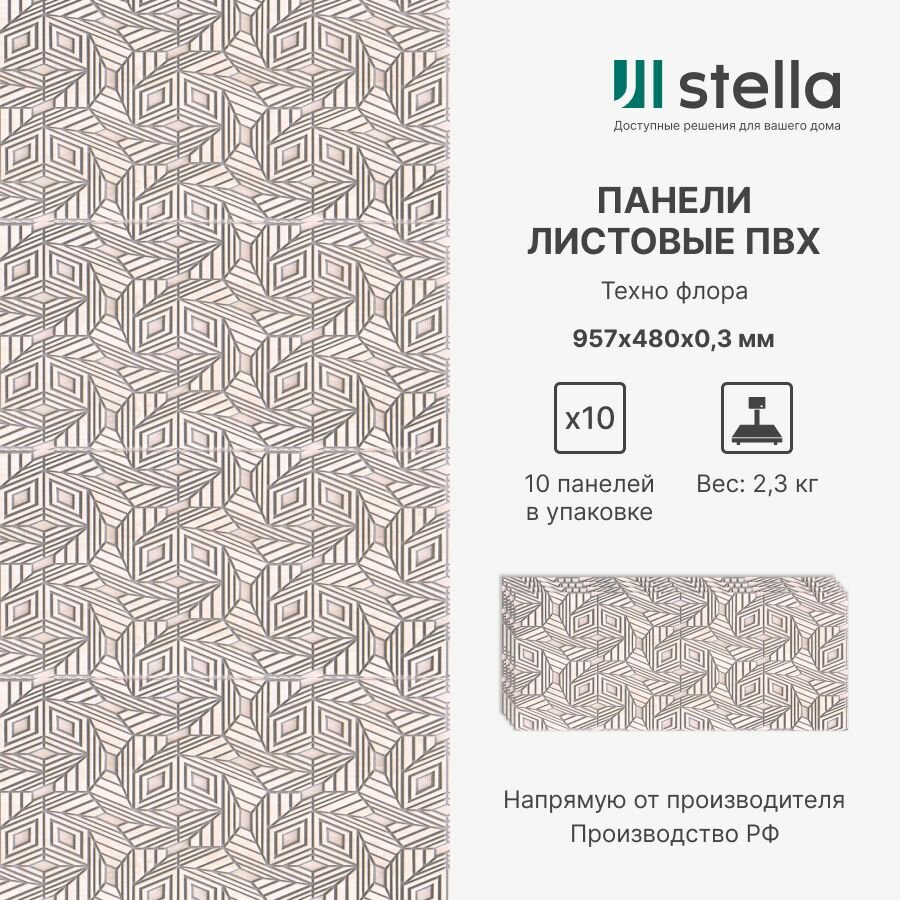Stella Стеновые панели ПВХ с 3D эффектом для стен, для кухни, для ванной, мозаика Техно флора 957х480х0,3 мм (упаковка 10 штук)