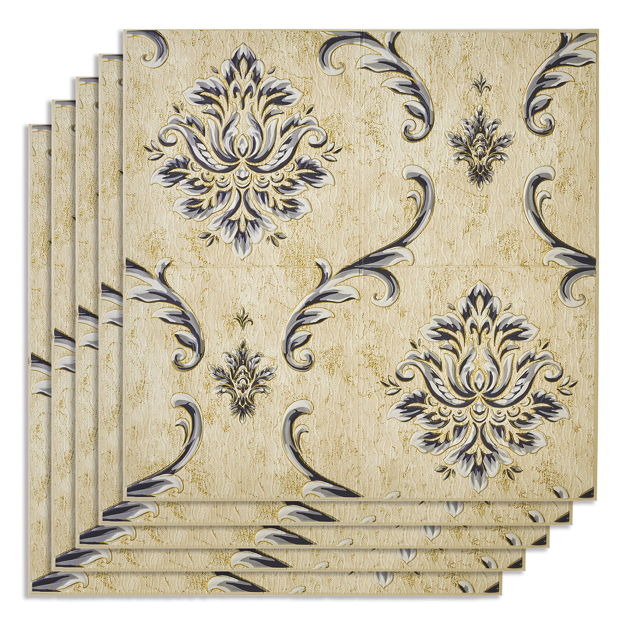 Комплект 5 шт 3D панель для стен LAKO DECOR, Барокко цвет Бежевый 4, 70x70см, толщина 6мм