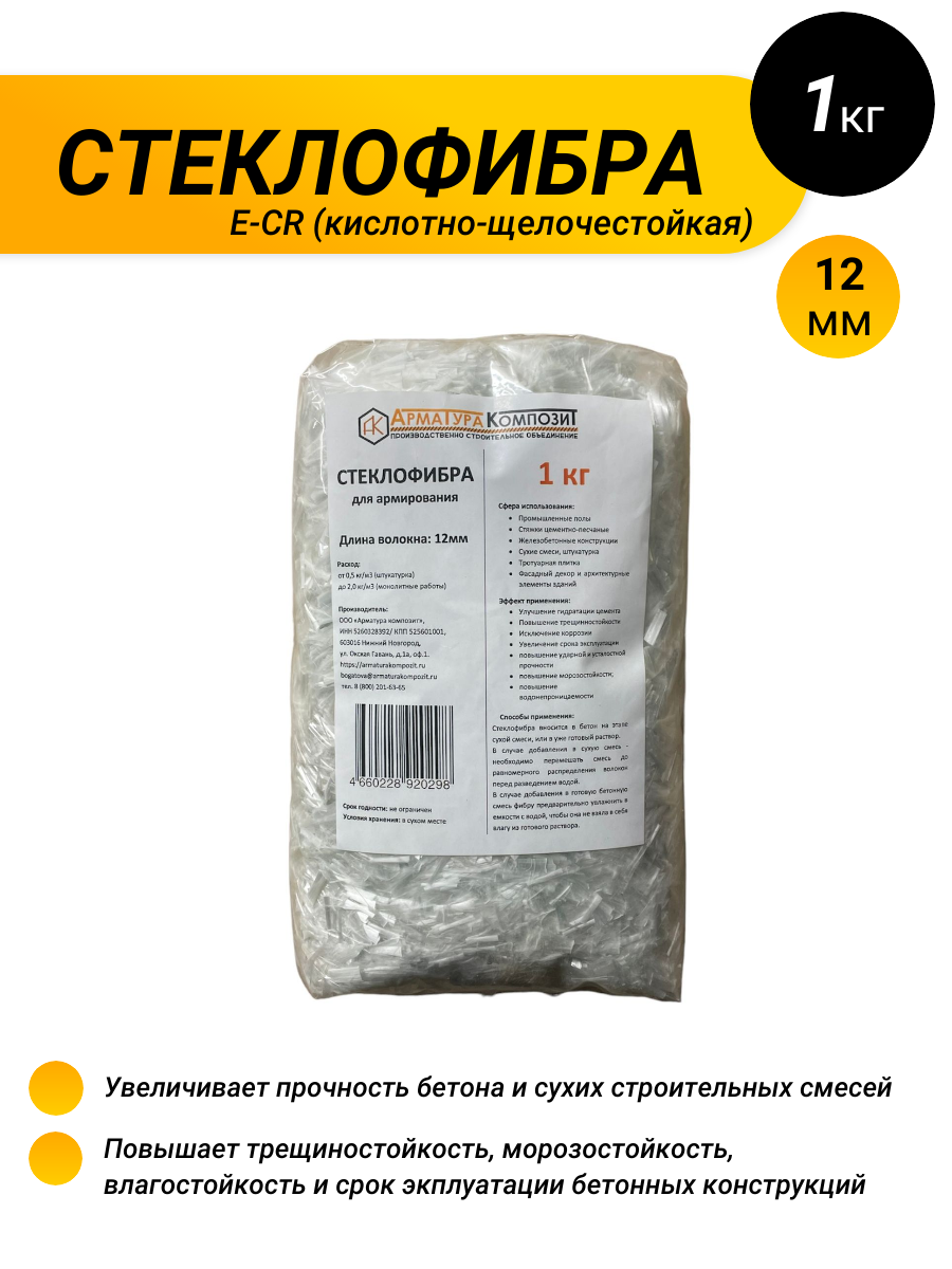 Добавка в раствор стеклофибра щелочестойкая 12 мм 1 кг "Арматура Композит" интересное: