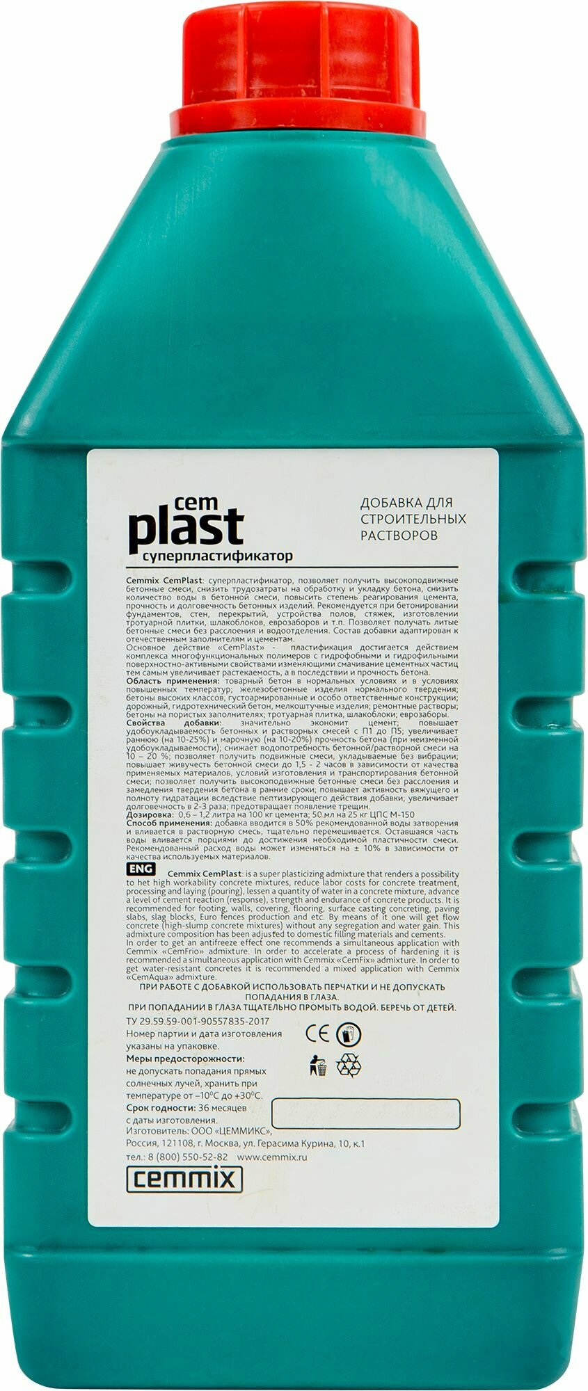 Суперпластификатор Cemmix CemPlast 1 л интересное:
