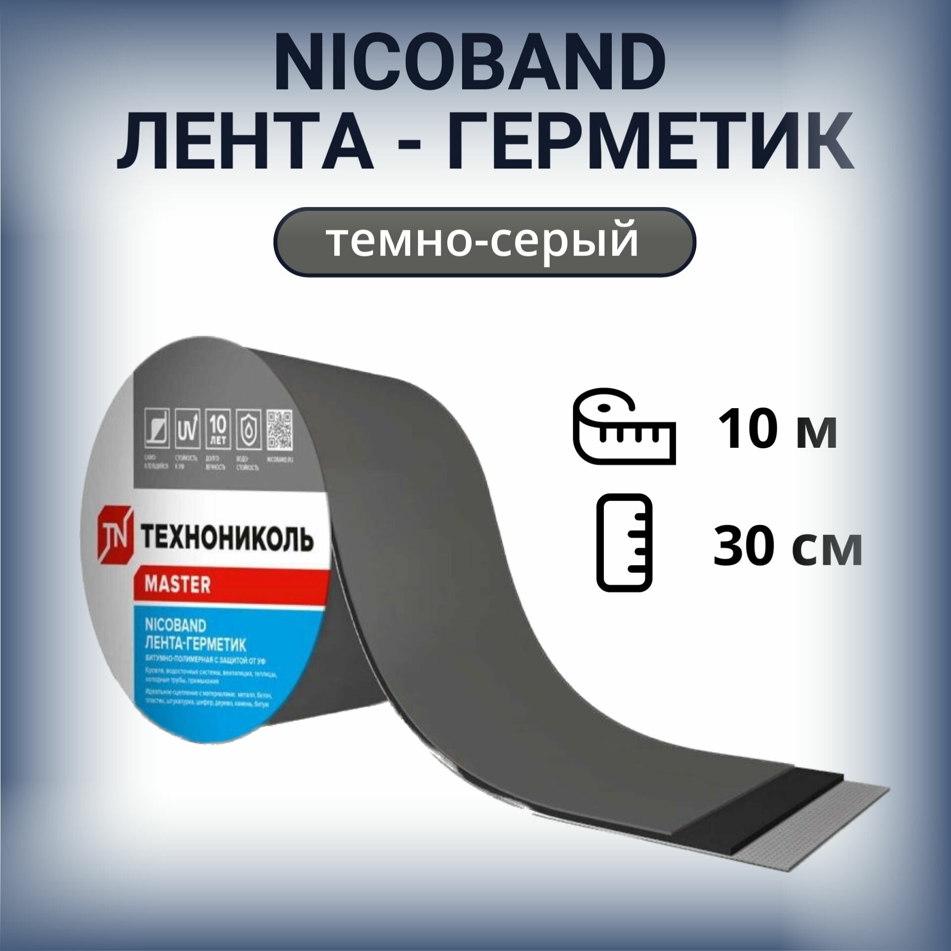Лента-герметик самоклеящаяся Технониколь Nicoband, битумно-полимерная, 10 м x 15 см, темно-серая
