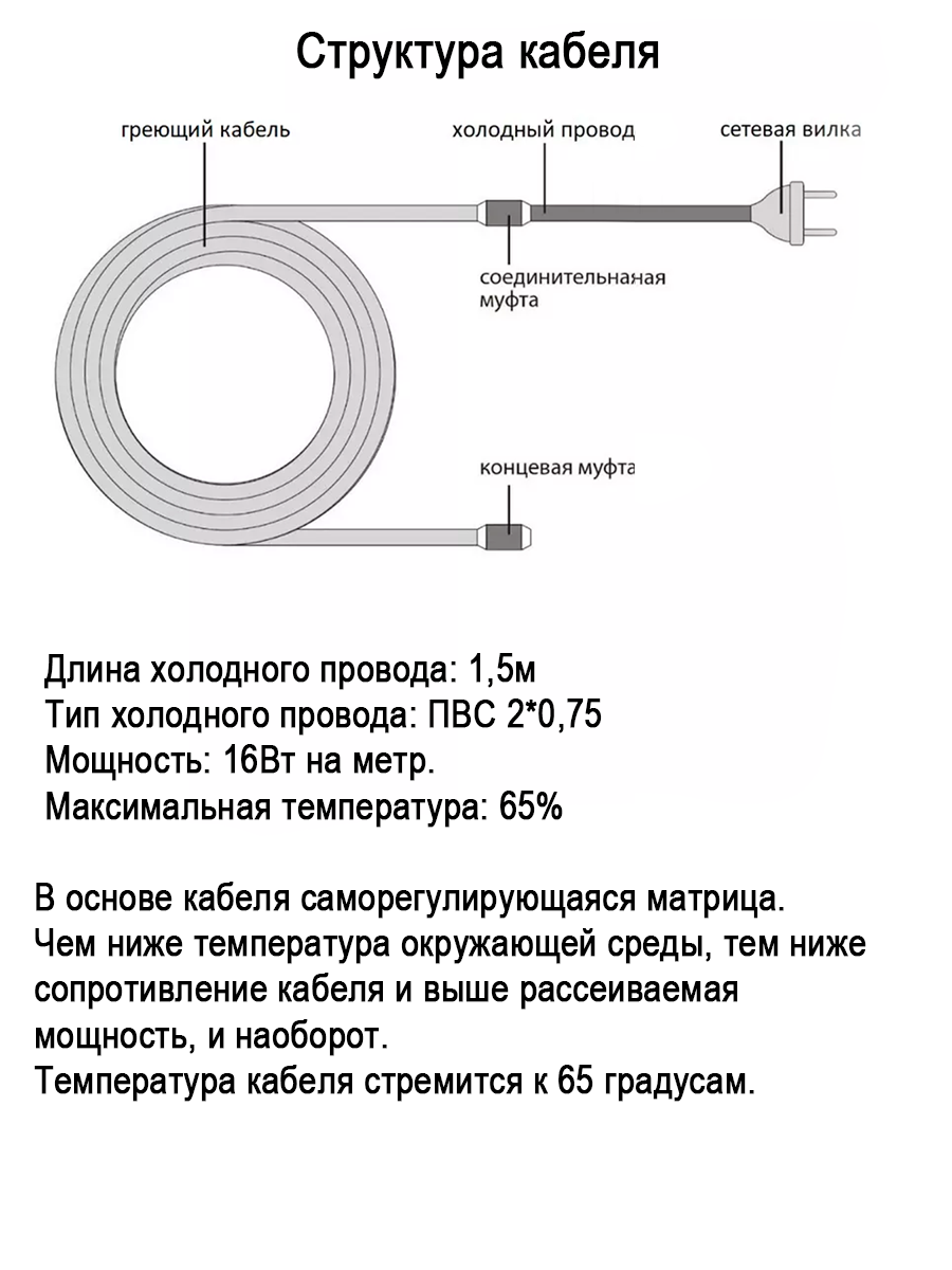 | Вид комплектующего | вилка / греющий кабель / кабель пвс |
