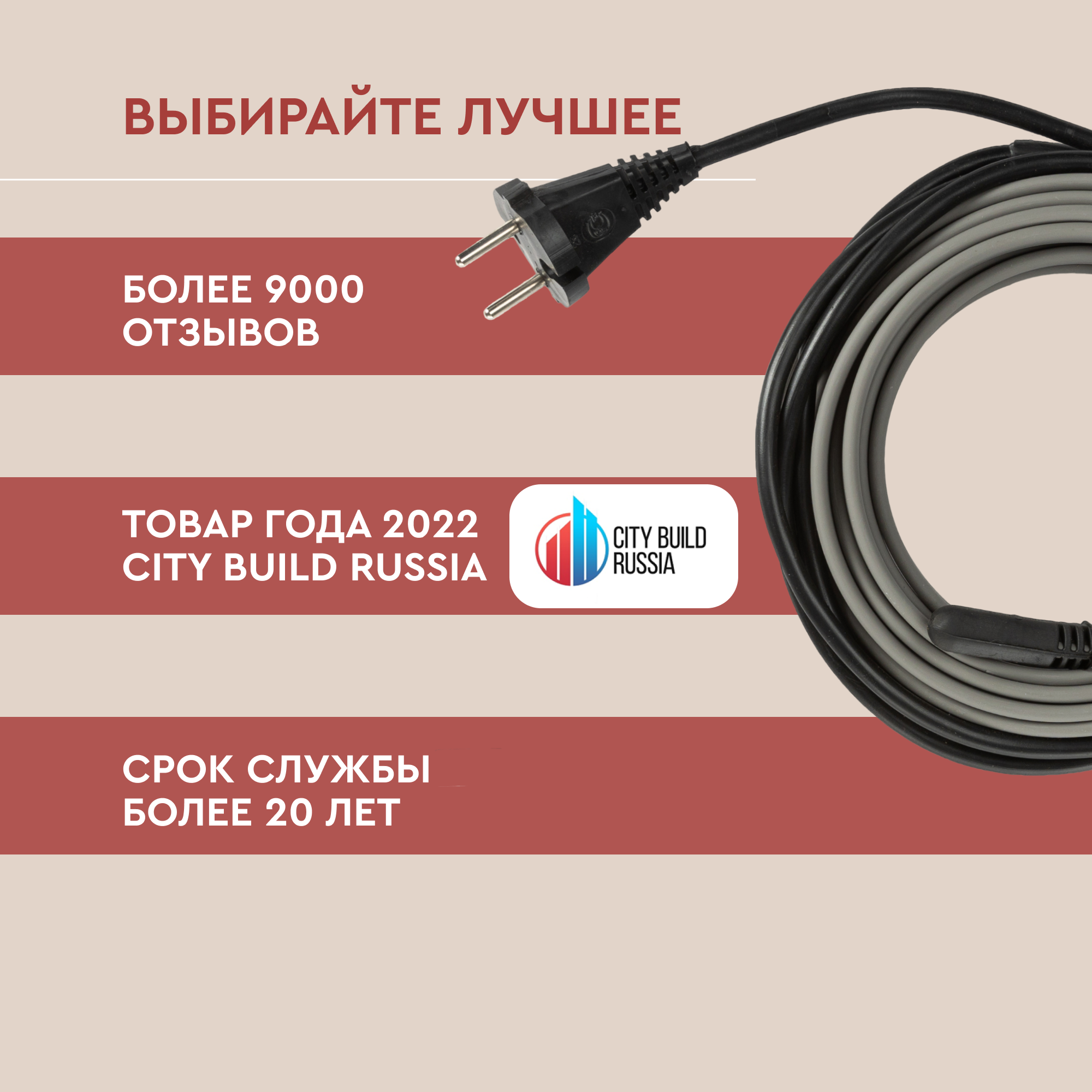 Греющий кабель на трубу 20 м 16 Вт/м саморегулирующийся для водопровода готовый комплект ТМ Обогрев Люкс