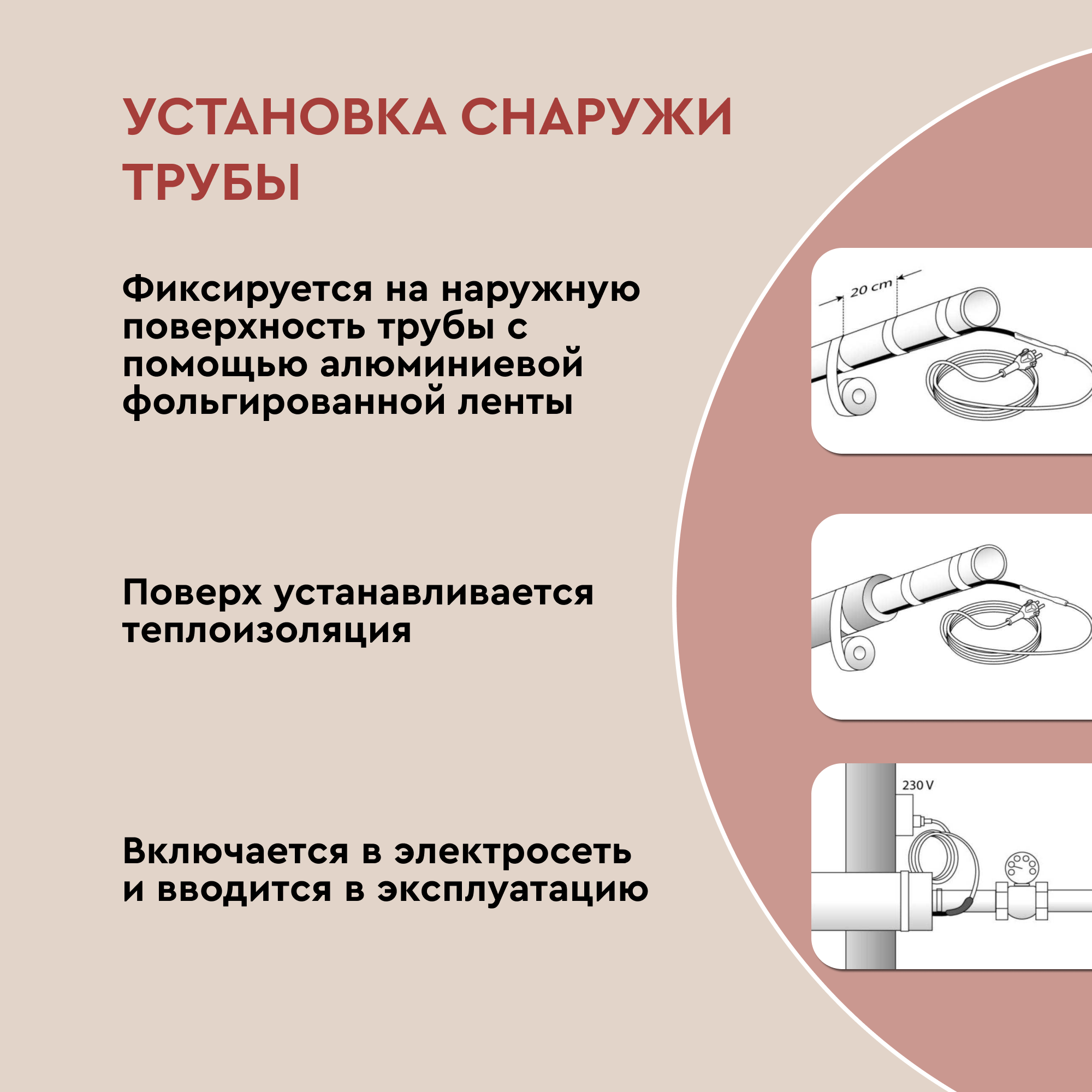 Греющий кабель на трубу 8 м 16 Вт/м саморегулирующийся для водопровода готовый комплект ТМ Обогрев Люкс