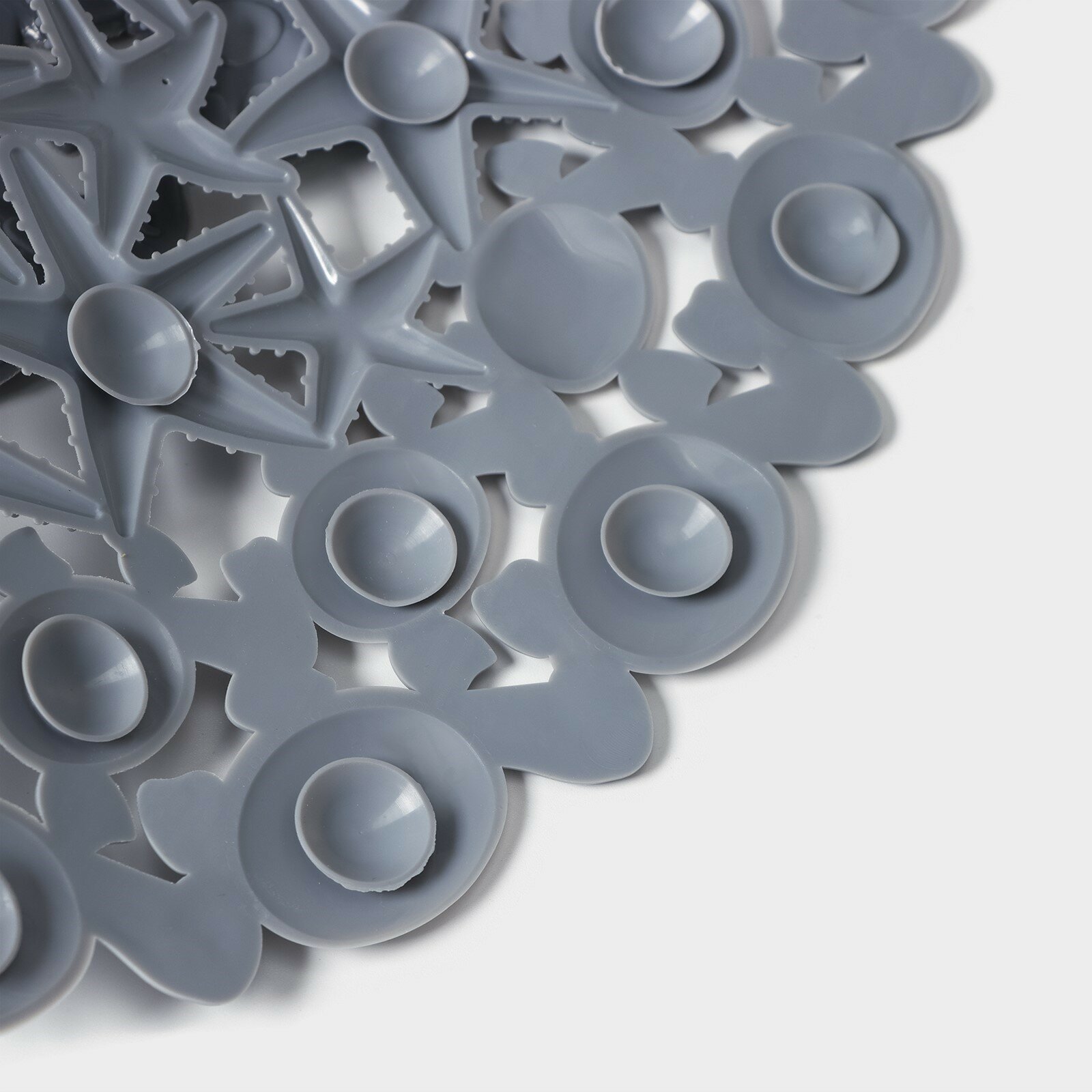 Коврик противоскользящий в ванну Доляна «Прибрежье», на присосках, 38×66 см, цвет серый
