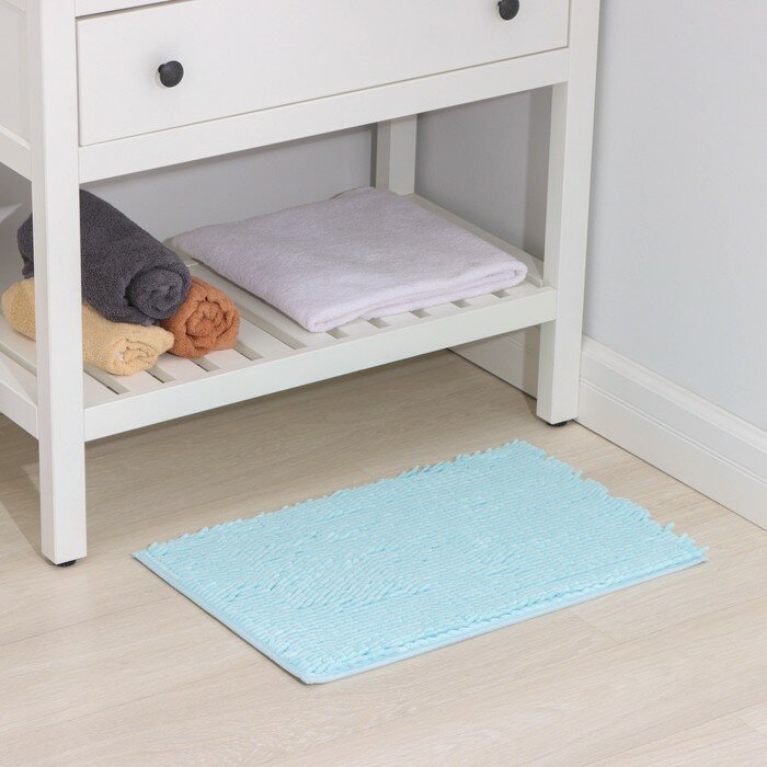Купить Коврик для ванной Доляна «Букли длинные», 40×60 см, длина букли 2 см, цвет голубой