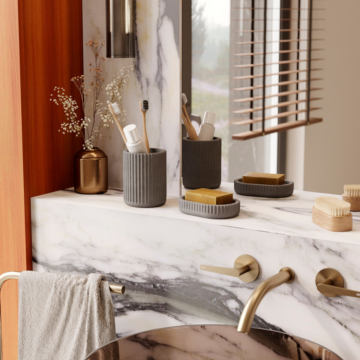 Набор для ванной комнаты Chloe 31 (мыльница для ванной и стакан для зубных щеток), бетон, серый глянцевый