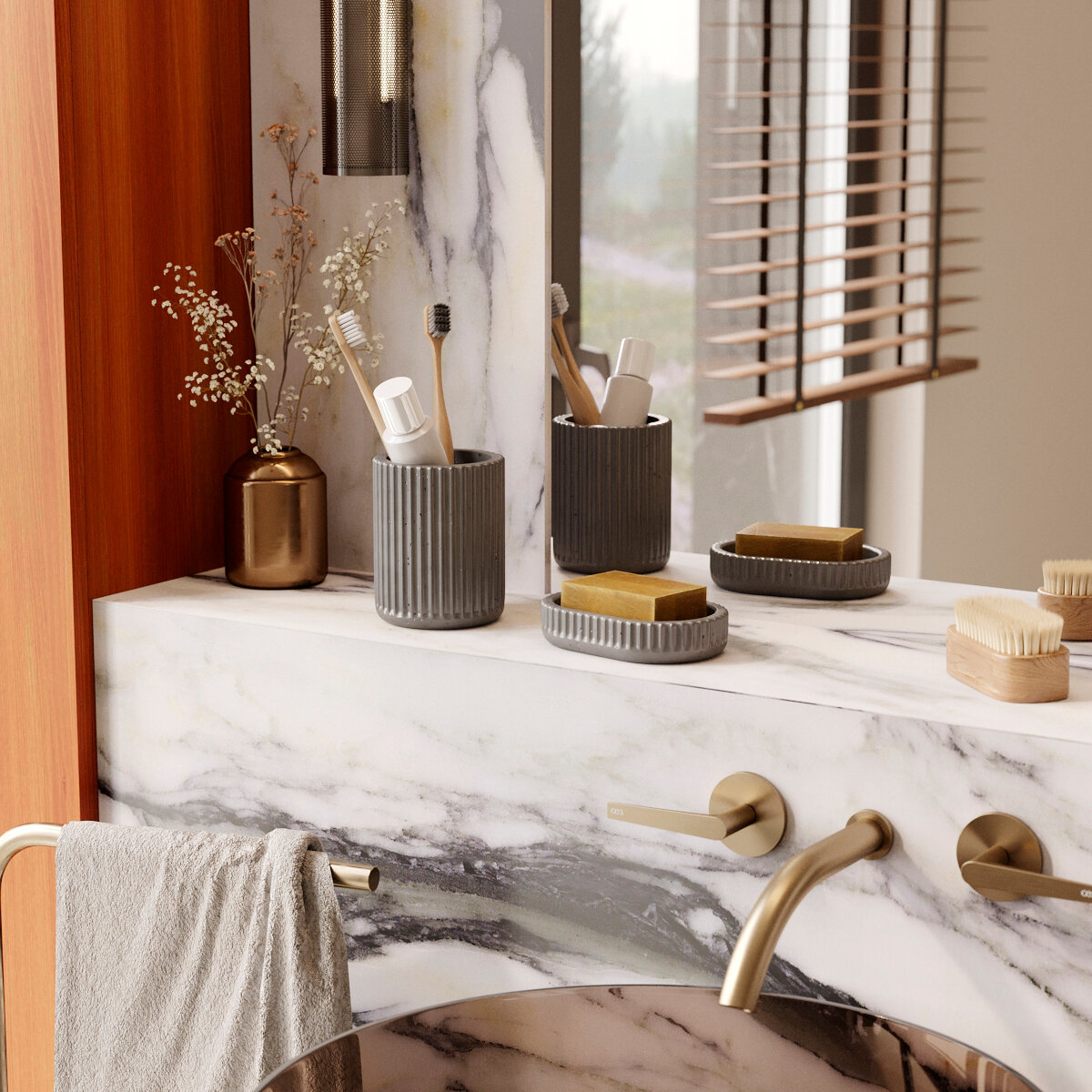 Набор для ванной комнаты Chloe 05 (мыльница для ванной и стакан для зубных щеток), бетон, кремовый матовый