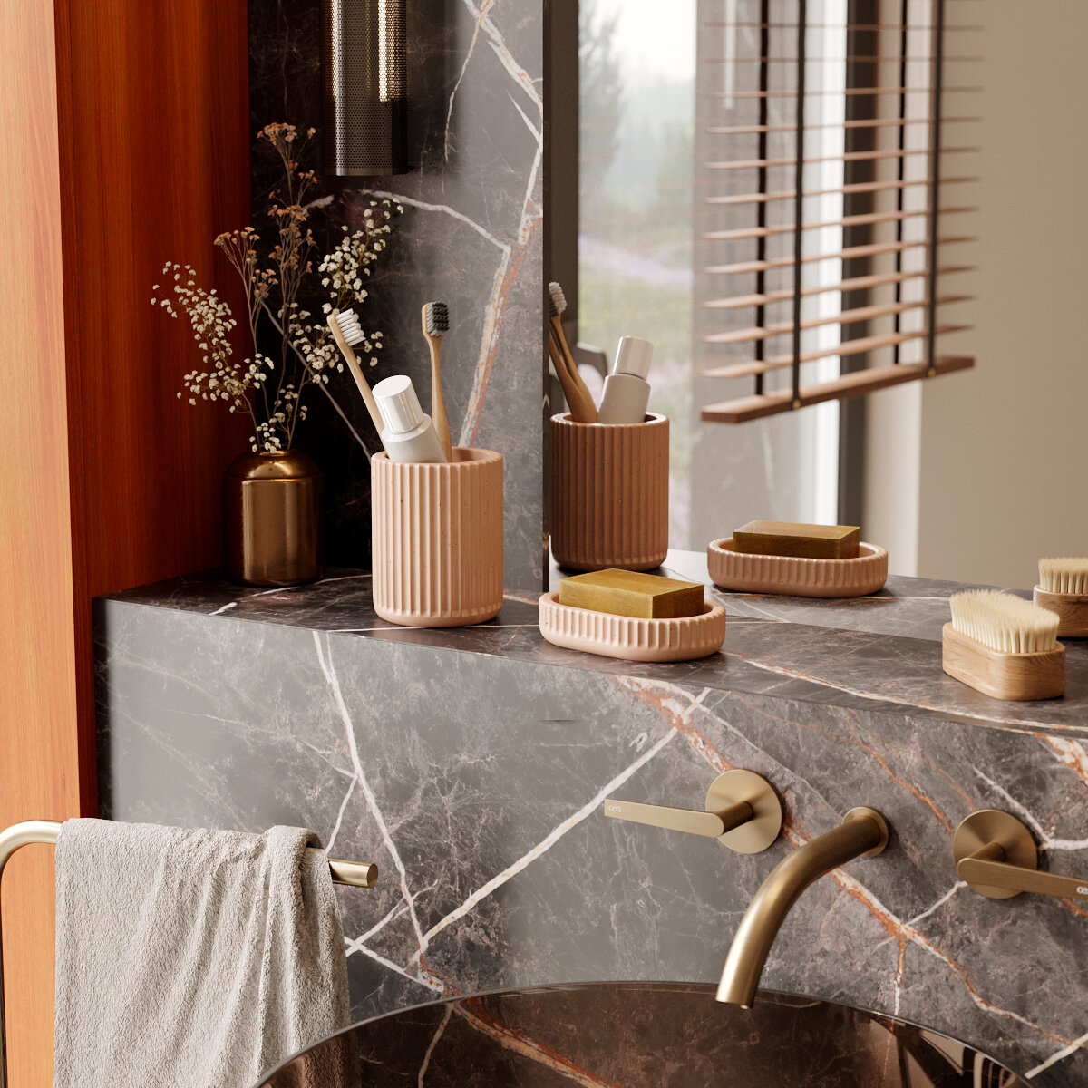 Набор для ванной комнаты Chloe 05 (мыльница для ванной и стакан для зубных щеток), бетон, розовый матовый