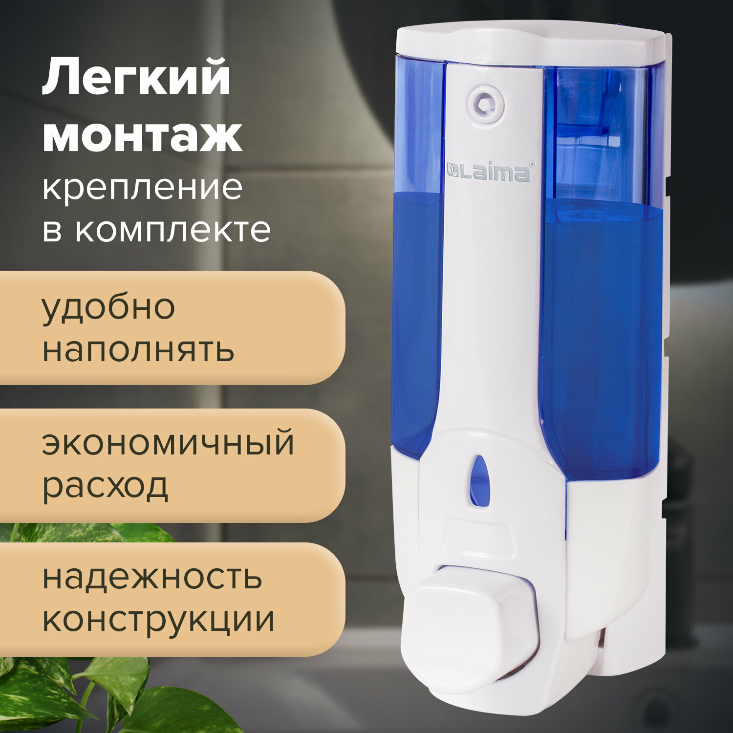 СохранитьДиспенсер для жидкого мыла Лайма, наливной 380мл, ABS-пластик белый (тонированный) (603921) интересное: