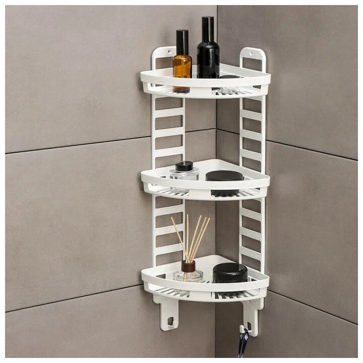 Полка для ванной комнаты 3-х ярусная 25х18х58см "Трансформер" угловая, цвет белый 9083021 интересное: