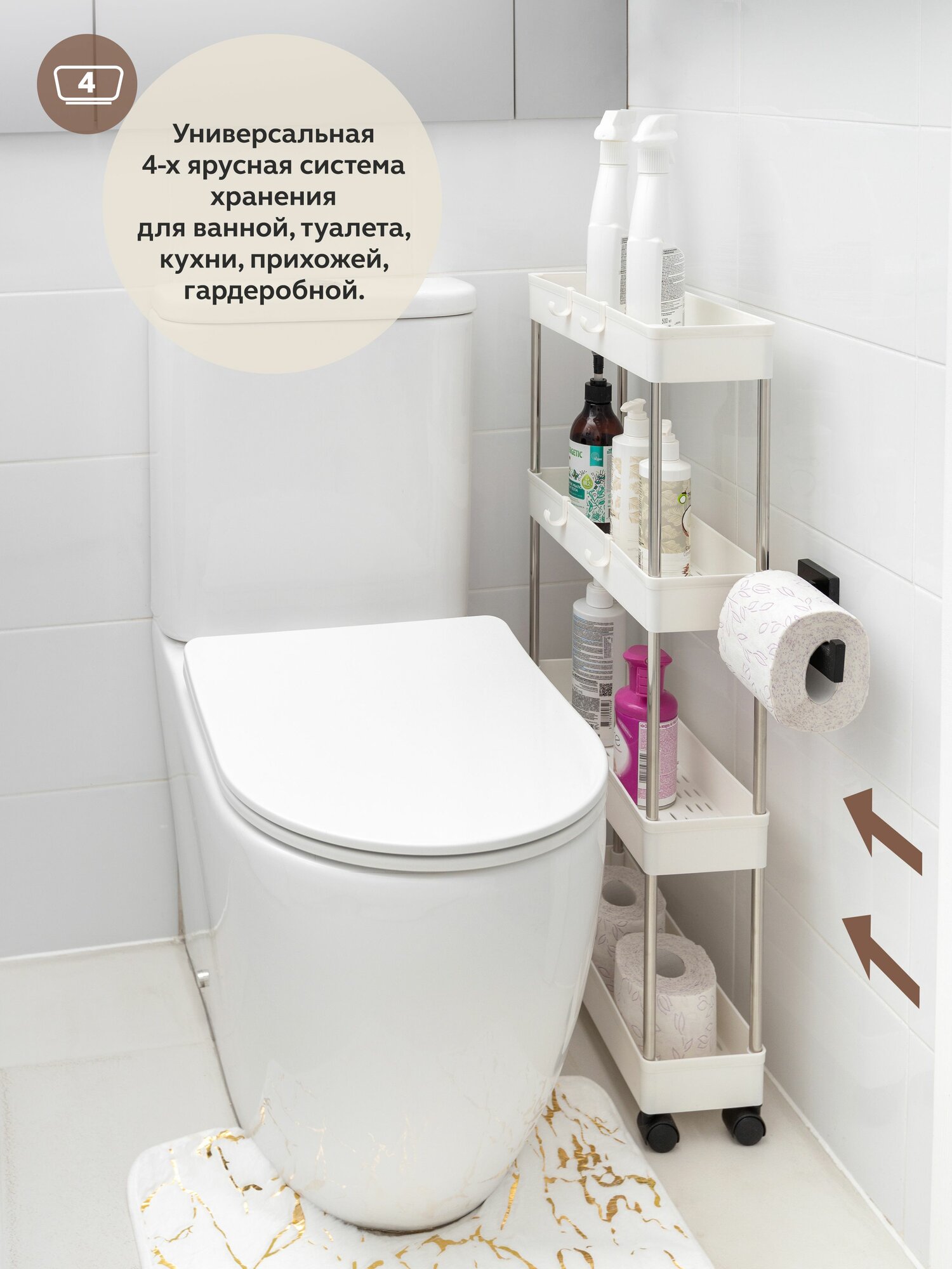 СохранитьЭтажерка GASTRORAG GR-750-4W, узкая пластиковая, на колесиках, органайзер для кухни, полка для ванной напольная, тележка косметологическая интересное: