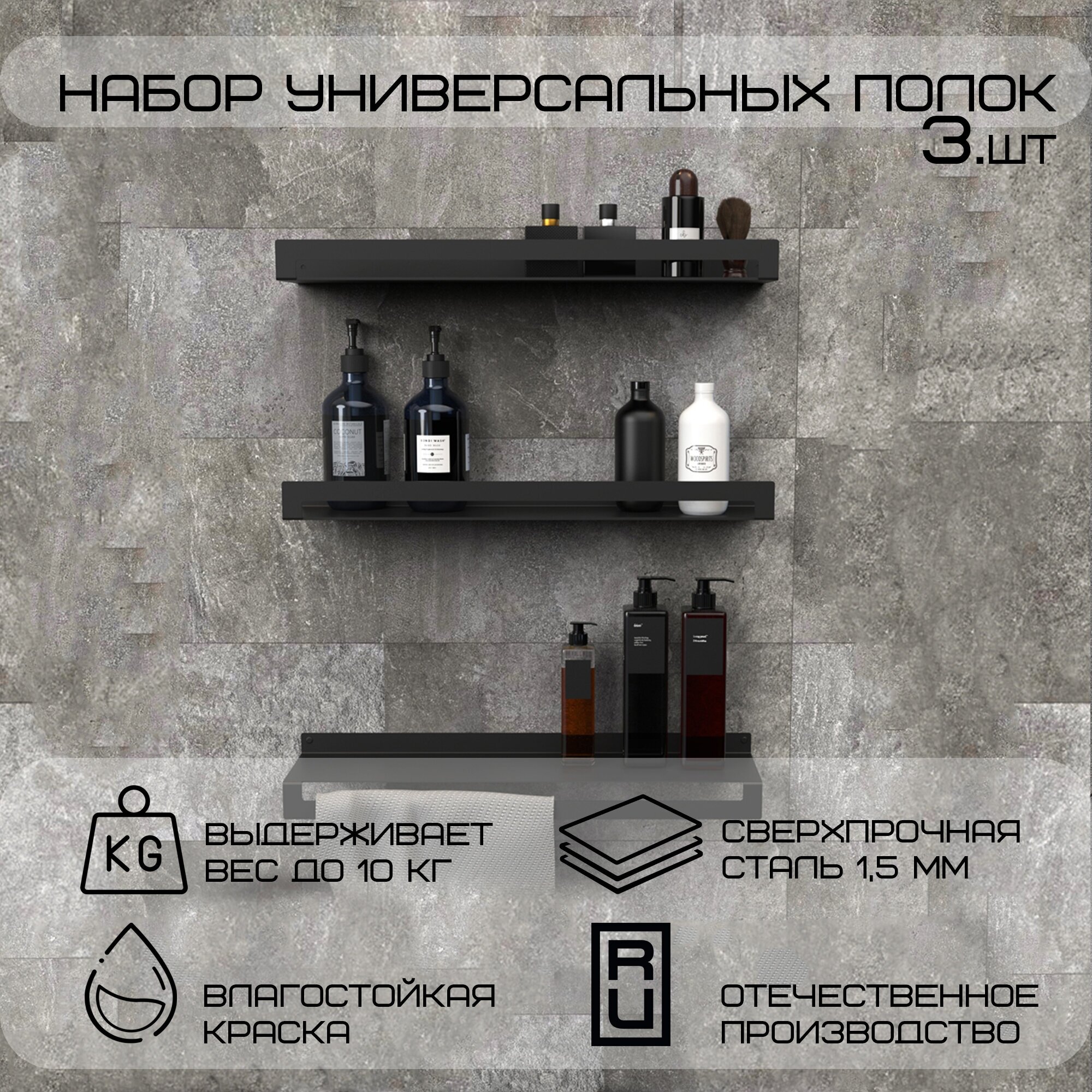 Полка настенная 3 штуки/ Полка для ванной комнаты из металла 50х11,5х4 см, черная