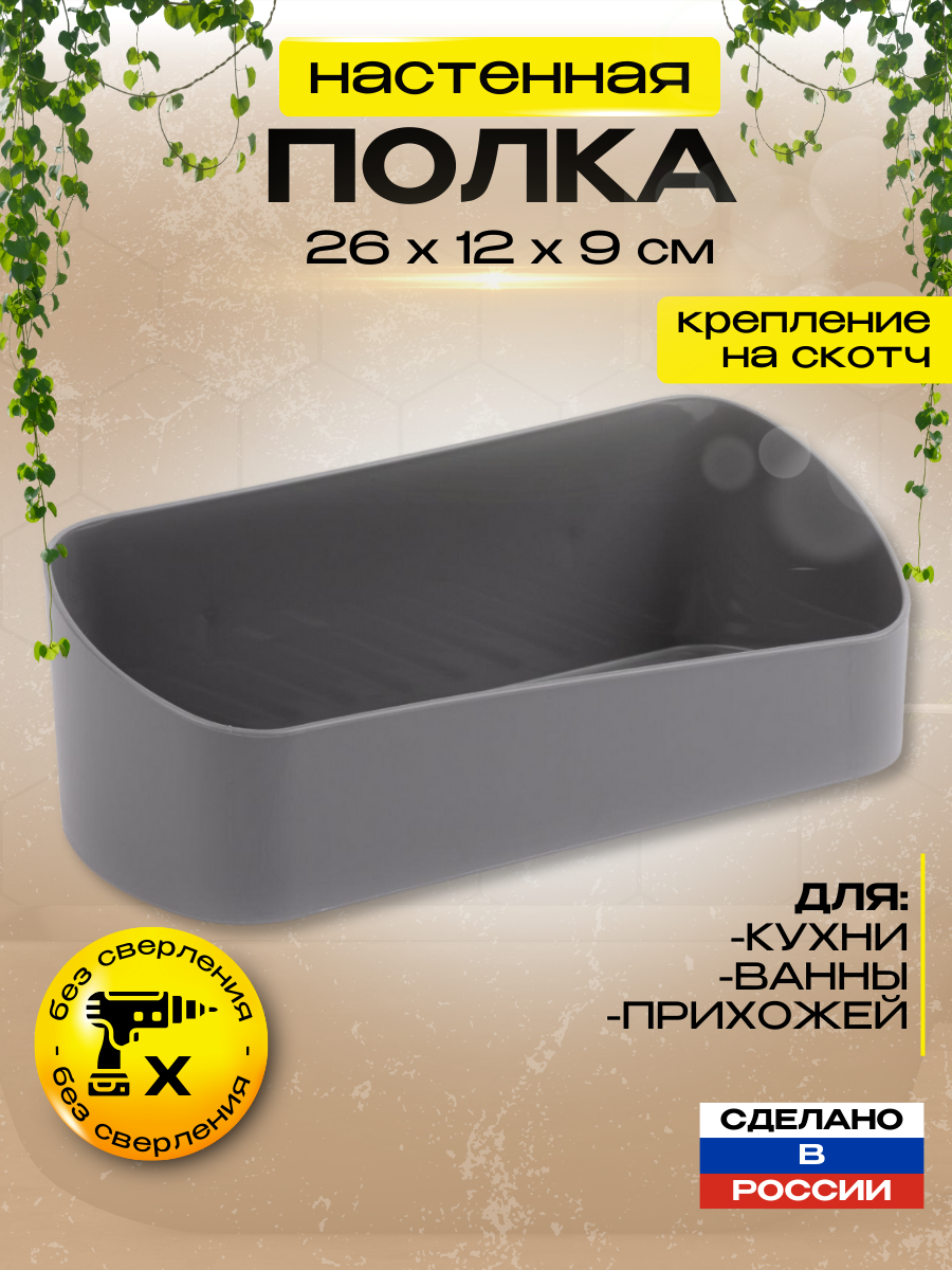 Полка для ванной Альтернатива, на скотче, 26 x 12 x 9 см, серая