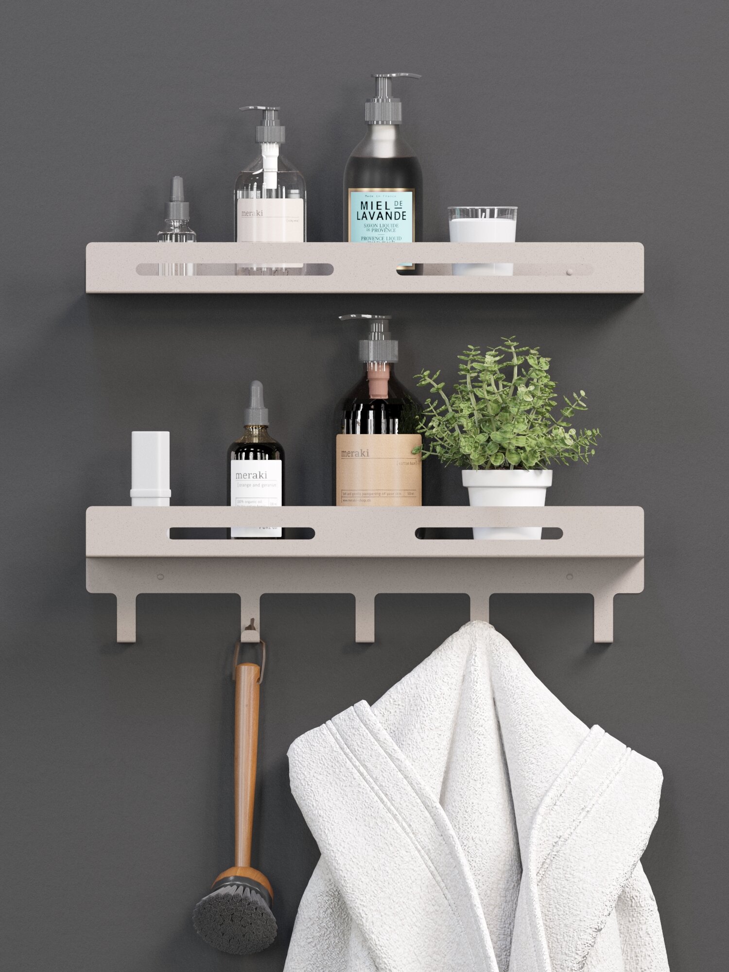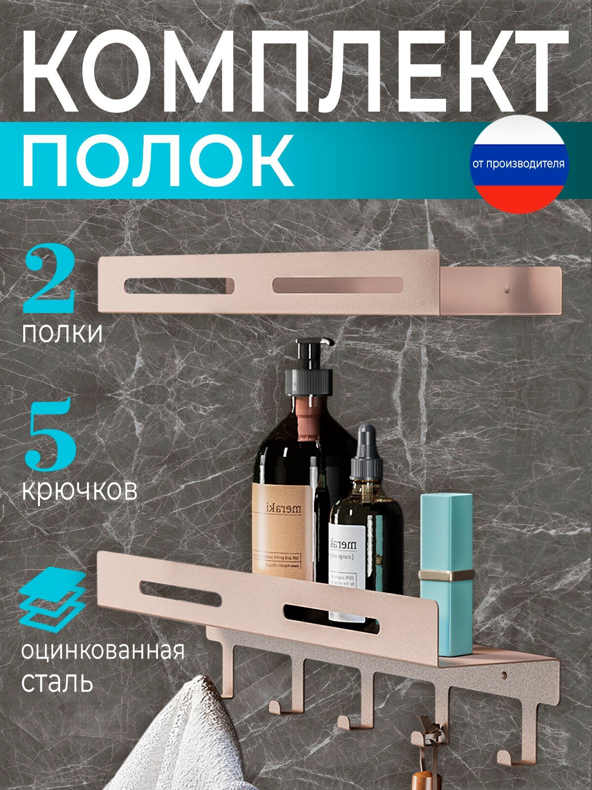 Купить Комплект полок для ванной и душа с крючками 2 шт. Цвет бежевый