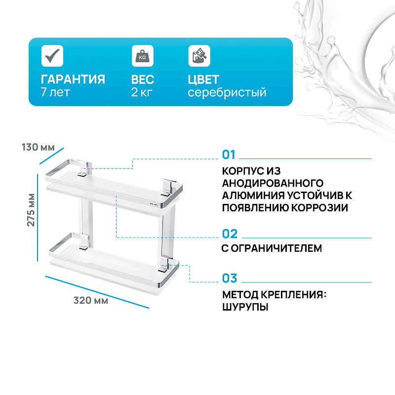 Стеклянная полка AM.PM Sense L A7455200 алюминий, двухуровневая